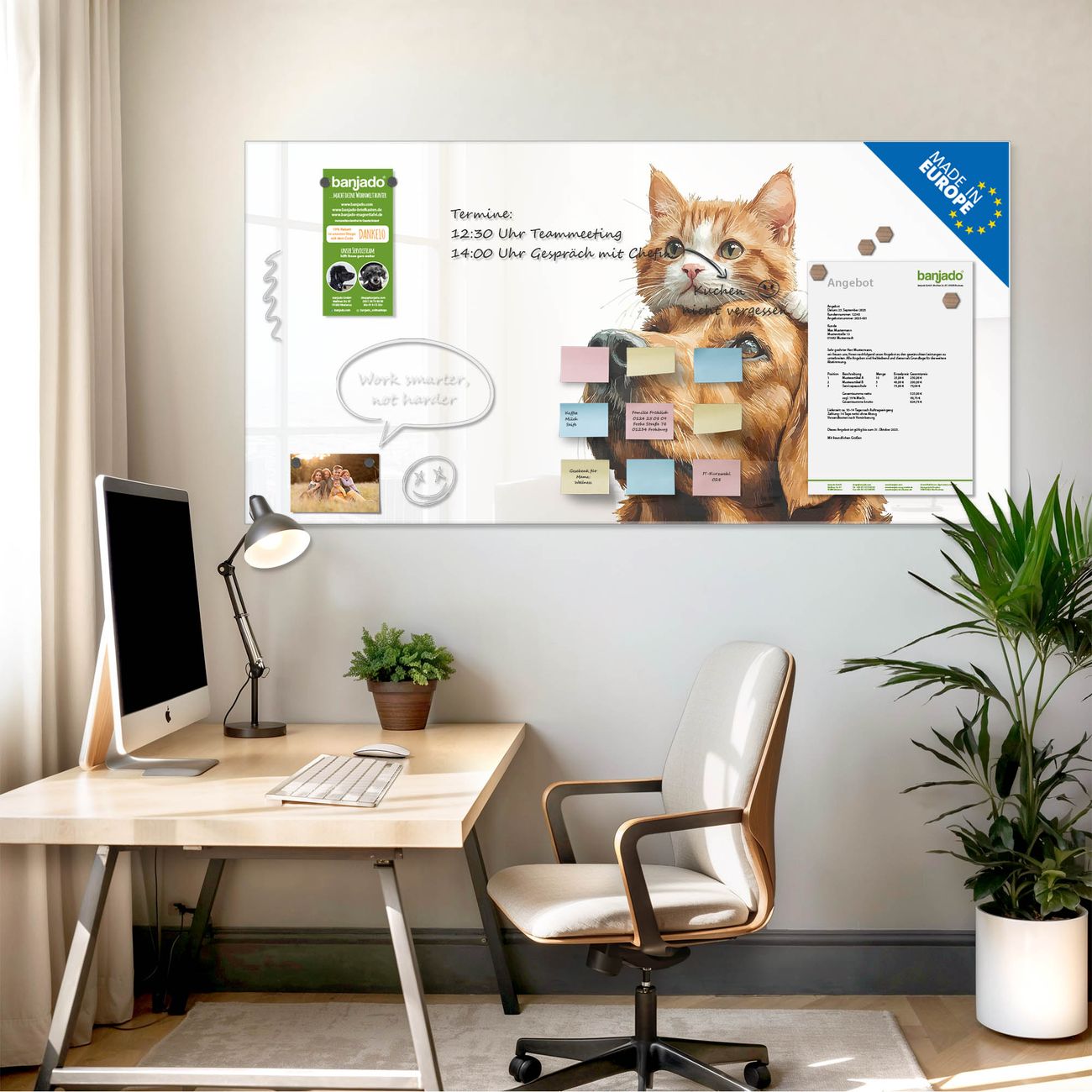 Jede Glas Magnettafel wird in unserer Werkstatt von Hand gefertigt und sorgfältig geprüft. So erhalten Sie ein echtes Qualitätsprodukt, das Funktion und Ästhetik perfekt vereint.?? Warum banjado?