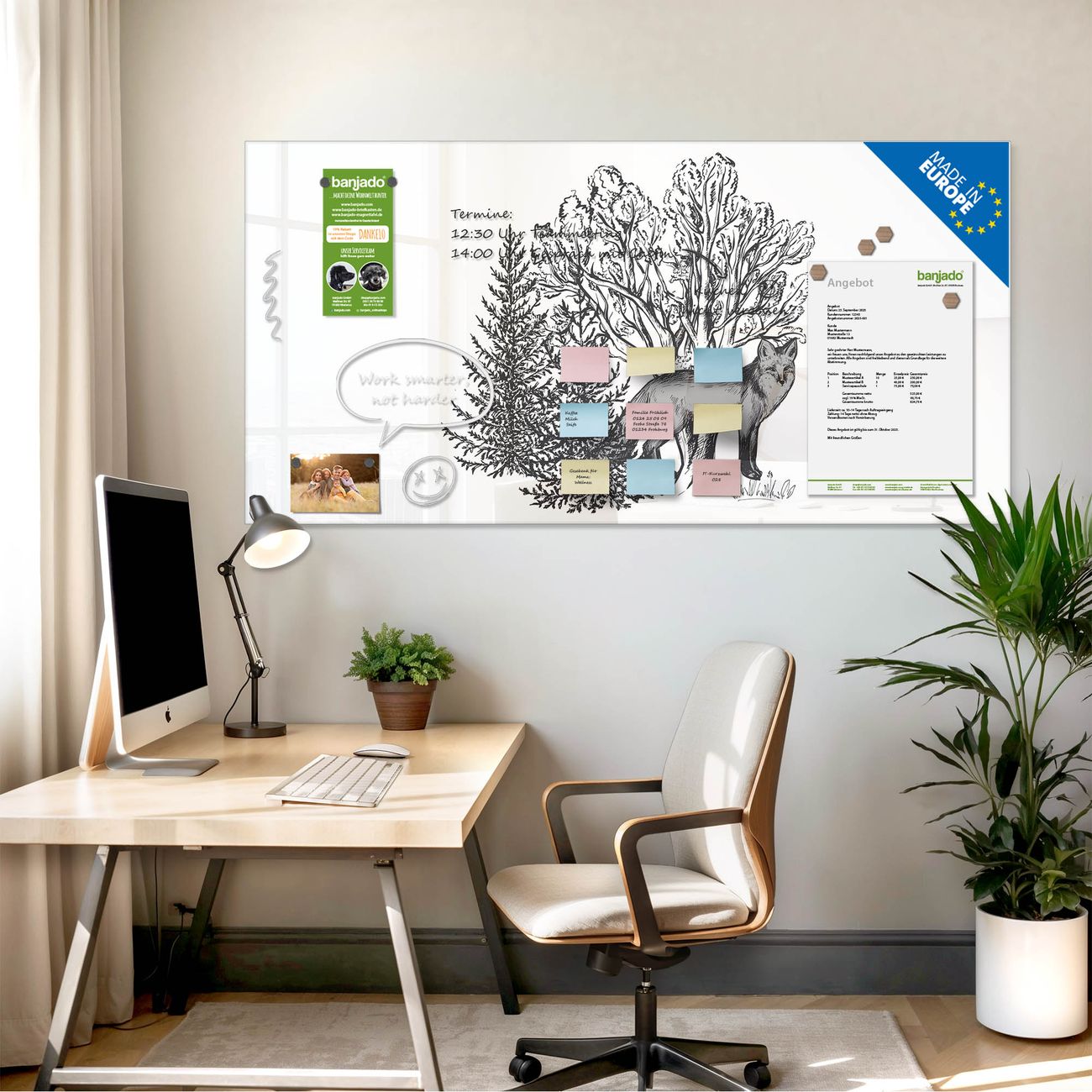 Jede Glas Magnettafel wird in unserer Werkstatt von Hand gefertigt und sorgfältig geprüft. So erhalten Sie ein echtes Qualitätsprodukt, das Funktion und Ästhetik perfekt vereint.?? Warum banjado?