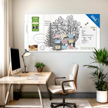 Auf der glatten Glasoberfläche lassen sich Termine, Rezepte oder Notizen ganz einfach mit Kreidestiften festhalten und rückstandslos entfernen. Starke Neodym-Magnete halten Ihre wichtigsten Erinnerungen sicher an Ort und Stelle. So entsteht Ihre ganz persönliche Ideenwand - jeden Tag neu.