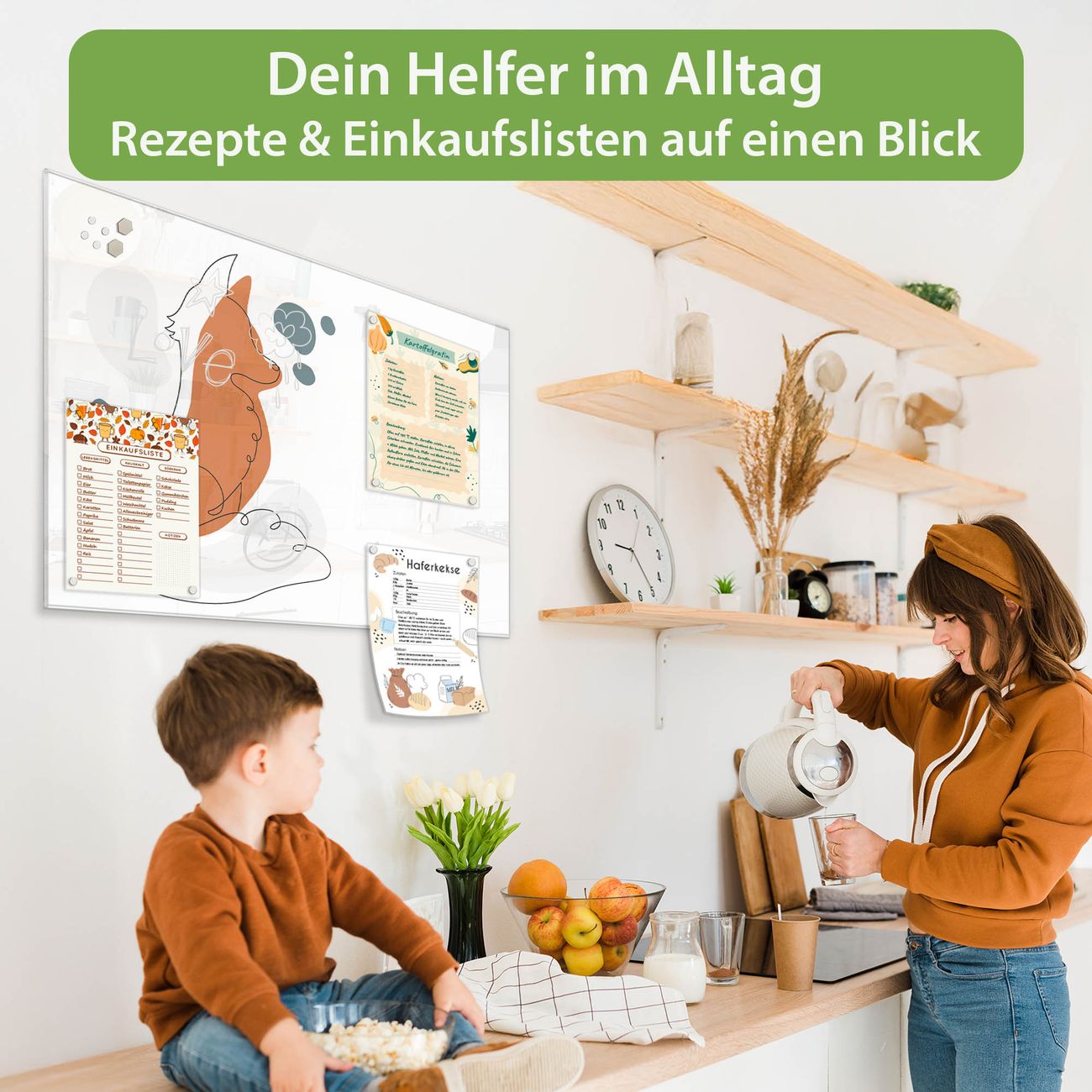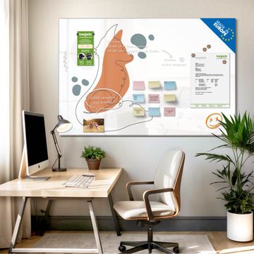 Auf der glatten Glasoberfläche lassen sich Termine, Rezepte oder Notizen ganz einfach mit Kreidestiften festhalten und rückstandslos entfernen. Starke Neodym-Magnete halten Ihre wichtigsten Erinnerungen sicher an Ort und Stelle. So entsteht Ihre ganz persönliche Ideenwand - jeden Tag neu.