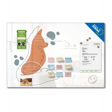 Material: 4mm Sicherheitsglas mit Metallrückwand Eigenschaften: beschreibbar, magnetisch, kratzfest Maße: 120x80x0,6cm, 14,40kg schwer Motiv Nummer 13294 Fuchs in Linien Zubehör: inklusive 4 Neodym-Magnete
