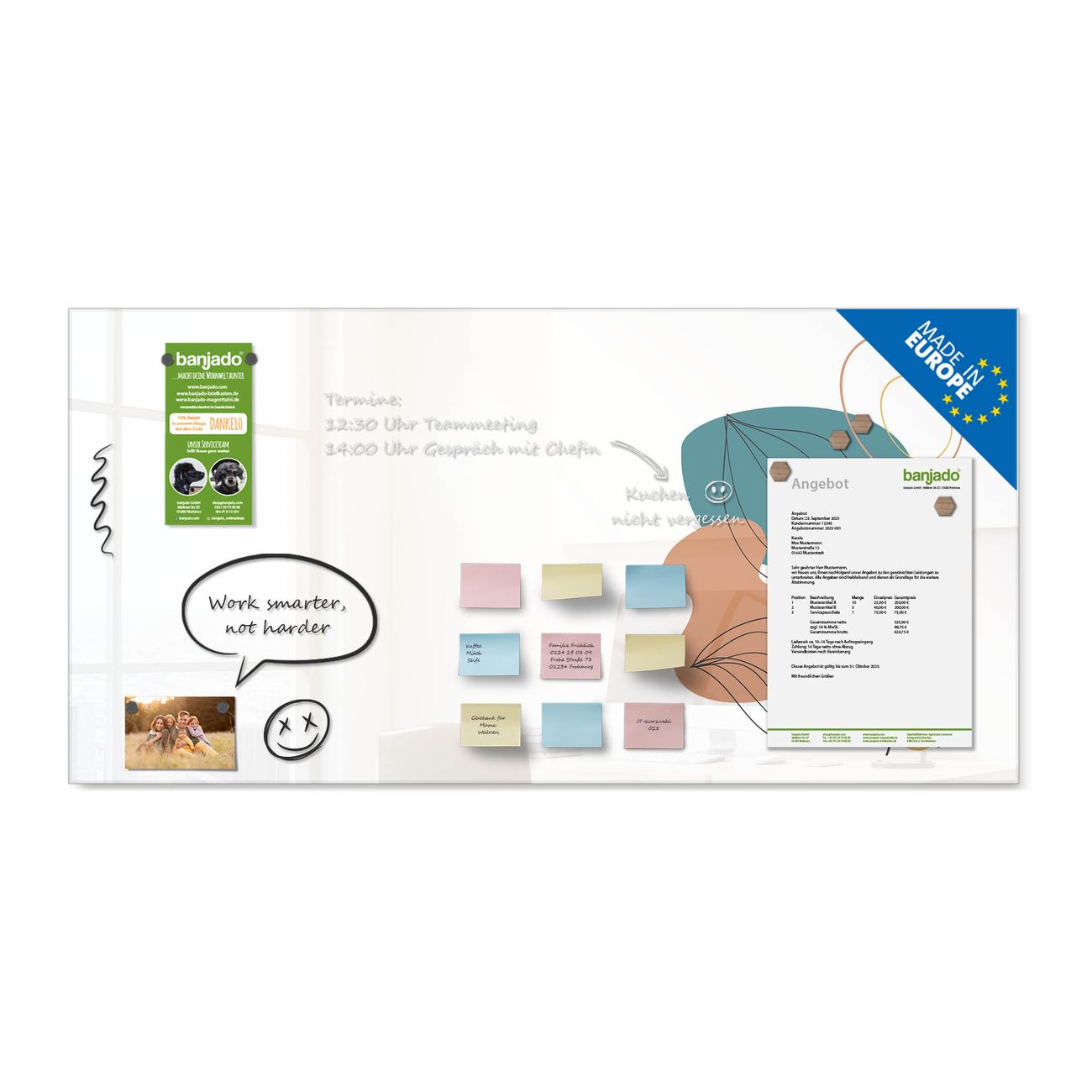 Jede Glas Magnettafel wird in unserer Werkstatt von Hand gefertigt und sorgfältig geprüft. So erhalten Sie ein echtes Qualitätsprodukt, das Funktion und Ästhetik perfekt vereint.?? Warum banjado?