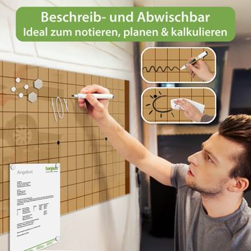 Auf der glatten Glasoberfläche lassen sich Termine, Rezepte oder Notizen ganz einfach mit Kreidestiften festhalten und rückstandslos entfernen. Starke Neodym-Magnete halten Ihre wichtigsten Erinnerungen sicher an Ort und Stelle. So entsteht Ihre ganz persönliche Ideenwand - jeden Tag neu.