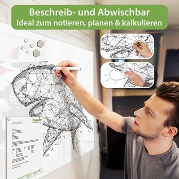 Auf der glatten Glasoberfläche lassen sich Termine, Rezepte oder Notizen ganz einfach mit Kreidestiften festhalten und rückstandslos entfernen. Starke Neodym-Magnete halten Ihre wichtigsten Erinnerungen sicher an Ort und Stelle. So entsteht Ihre ganz persönliche Ideenwand - jeden Tag neu.