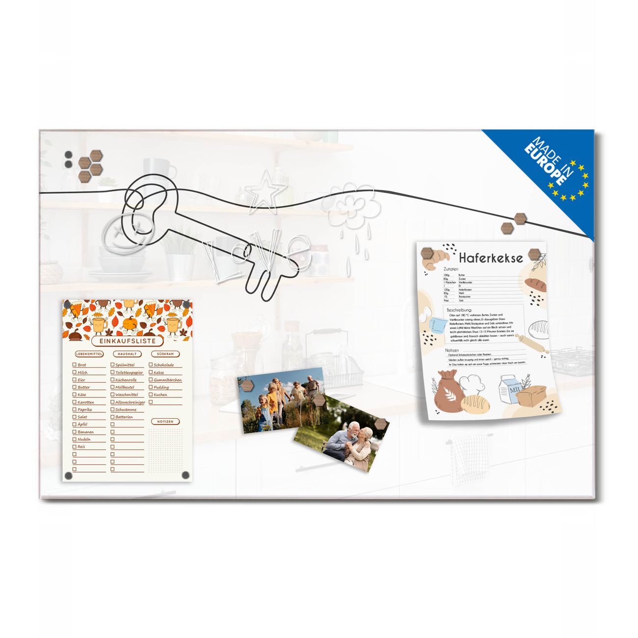 Ein Stück Design, das Ihren Alltag organisiert. Schreiben, heften, inspirieren - alles an einem Ort. Qualität, die man spürt. Montage leicht gemacht. Handwerk mit Herz - veredelt in Sachsen. Einzigartiges Design mit Motiv Motiv Hausherr Schlüssel 2 Beschreibbare Glasoberfläche, leicht zu reinigen Starke Magnetkraft durch Stahlrückwand Inklusive 4 Neodym-Magneten Flexible Montageoptionen Handveredelt in Sachsen - Qualität, die bleibt