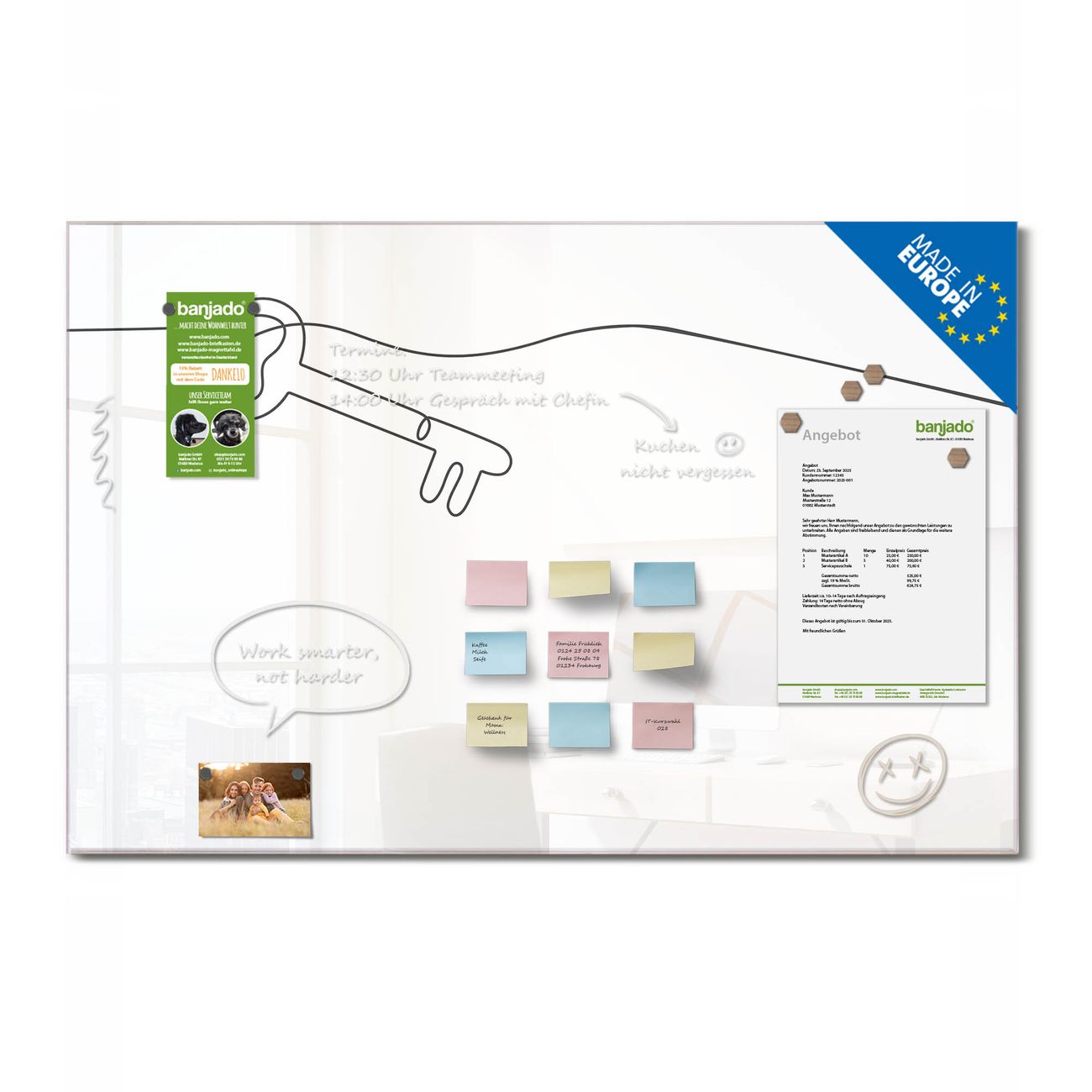 Bitte beachten Sie, dass ausschliessliche spezielle Magnete an der Glastafel haften. Wir empfehlen banjado Neodym Magnete, diese sind durch uns auf Wirksamkeit geprüft.