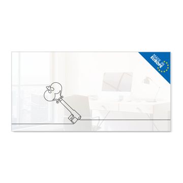 Material: 4mm Sicherheitsglas mit Metallrückwand Eigenschaften: beschreibbar, magnetisch, kratzfest Maße: 100x50x0,6cm, 7,50kg schwer Motiv Nummer 13111 Hausherrin Schlüssel 2 Zubehör: inklusive 4 Neodym-Magnete