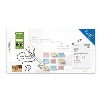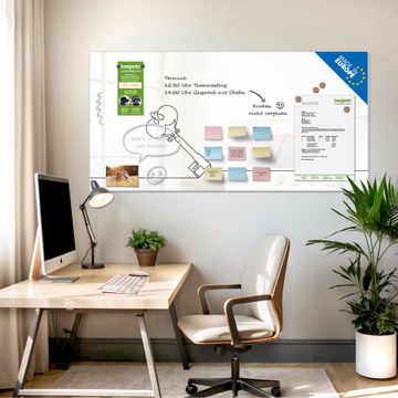 Auf der glatten Glasoberfläche lassen sich Termine, Rezepte oder Notizen ganz einfach mit Kreidestiften festhalten und rückstandslos entfernen. Starke Neodym-Magnete halten Ihre wichtigsten Erinnerungen sicher an Ort und Stelle. So entsteht Ihre ganz persönliche Ideenwand - jeden Tag neu.