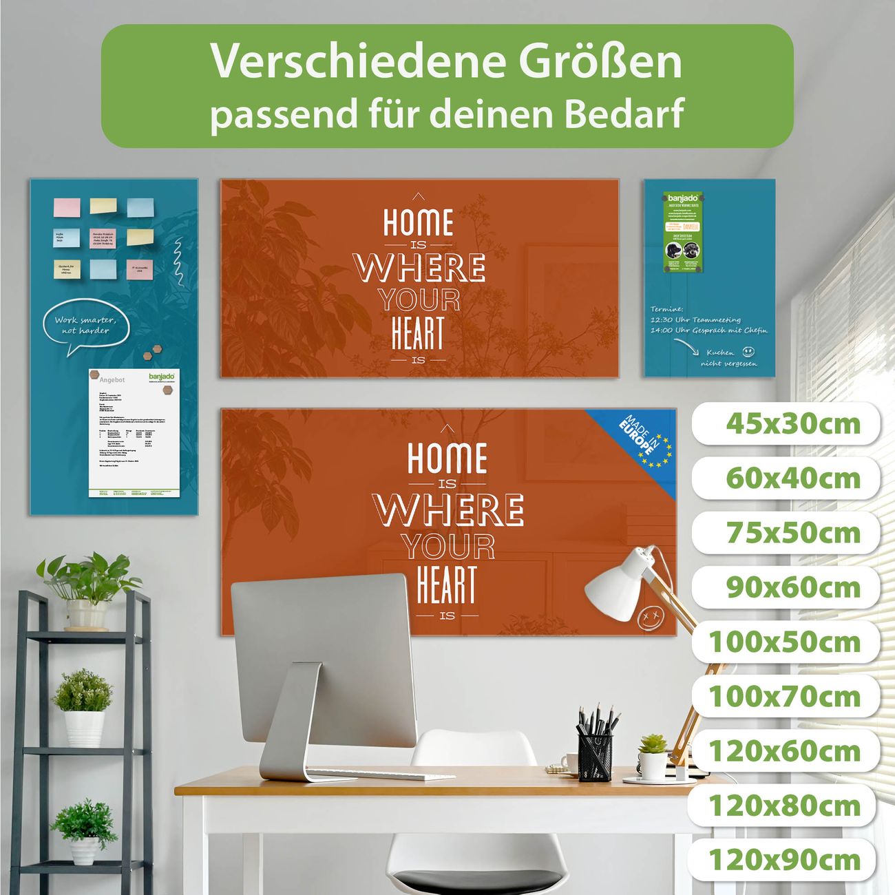 Material: 4mm Sicherheitsglas mit Metallrückwand Eigenschaften: beschreibbar, magnetisch, kratzfest Maße: 100x50x0,6cm, 7,50kg schwer Motiv Nummer 13400 Heimatliebe 2 Zubehör: inklusive 4 Neodym-Magnete