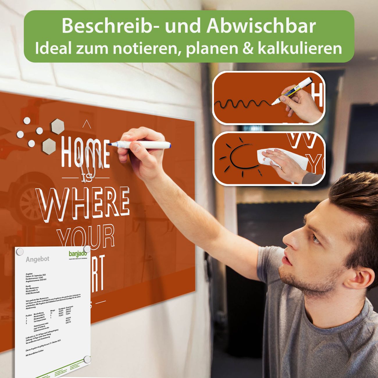 Jede Glas Magnettafel wird in unserer Werkstatt von Hand gefertigt und sorgfältig geprüft. So erhalten Sie ein echtes Qualitätsprodukt, das Funktion und Ästhetik perfekt vereint.?? Warum banjado?