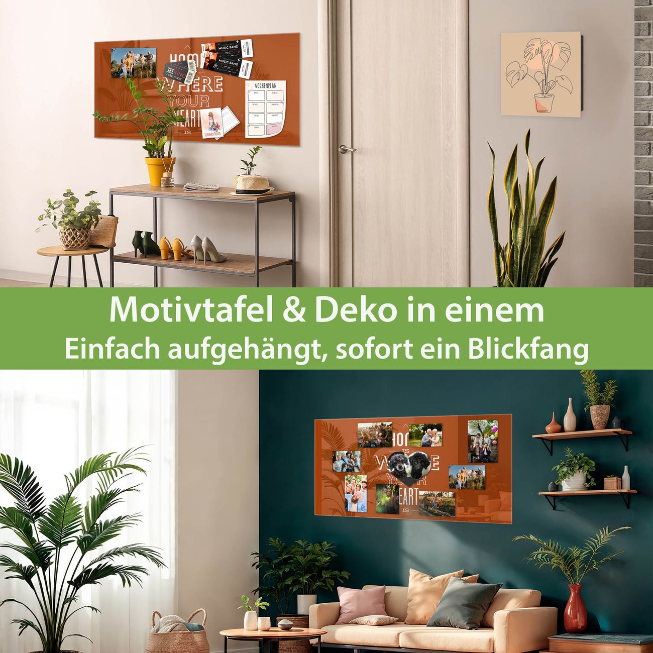Die banjado Glas Magnettafel mit dem Motiv Motiv Heimatliebe 2 verbindet Funktionalität mit Stil. Sie ersetzt das Zettelchaos durch klare Strukturen und bringt dabei eine warme, natürliche Atmosphäre in Ihr Zuhause. Ob im Büro, in der Küche oder im Eingangsbereich - dieses Design-Board zieht Blicke an und sorgt für Ordnung mit Charakter.