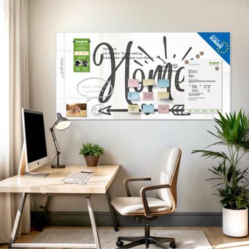 Auf der glatten Glasoberfläche lassen sich Termine, Rezepte oder Notizen ganz einfach mit Kreidestiften festhalten und rückstandslos entfernen. Starke Neodym-Magnete halten Ihre wichtigsten Erinnerungen sicher an Ort und Stelle. So entsteht Ihre ganz persönliche Ideenwand - jeden Tag neu.