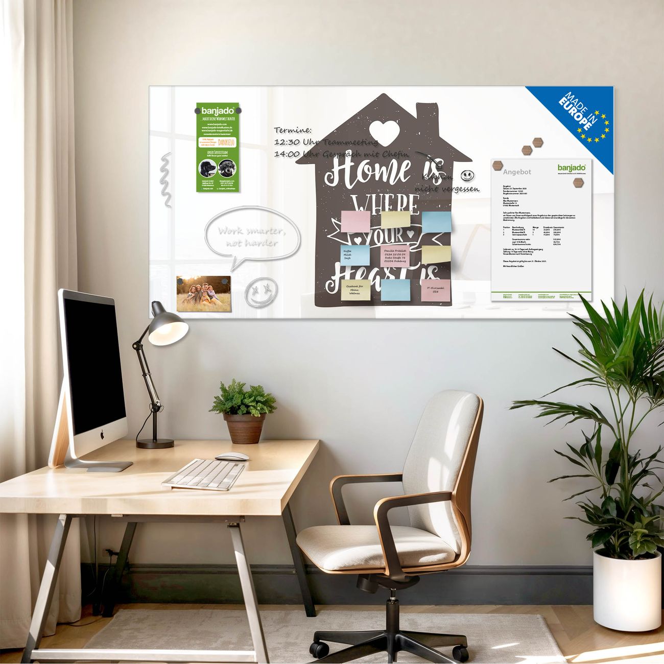 Jede Glas Magnettafel wird in unserer Werkstatt von Hand gefertigt und sorgfältig geprüft. So erhalten Sie ein echtes Qualitätsprodukt, das Funktion und Ästhetik perfekt vereint.?? Warum banjado?