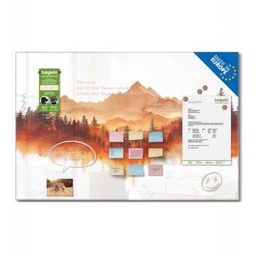Die banjado Glas Magnettafel mit dem Motiv Motiv Herbstliche Berglandschaft verbindet Funktionalität mit Stil. Sie ersetzt das Zettelchaos durch klare Strukturen und bringt dabei eine warme, natürliche Atmosphäre in Ihr Zuhause. Ob im Büro, in der Küche oder im Eingangsbereich - dieses Design-Board zieht Blicke an und sorgt für Ordnung mit Charakter.