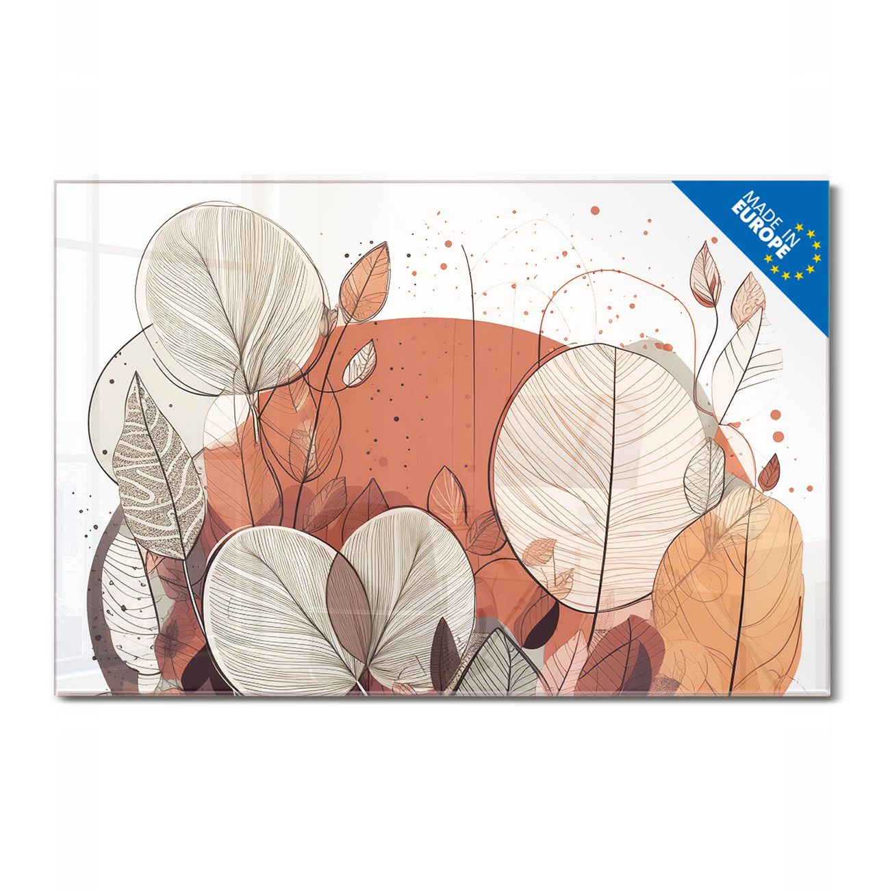 Material: 4mm Sicherheitsglas mit Metallrückwand Eigenschaften: beschreibbar, magnetisch, kratzfest Maße: 120x80x0,6cm, 14,40kg schwer Motiv Nummer 13227 Herbstliche Blätterpracht Zubehör: inklusive 4 Neodym-Magnete