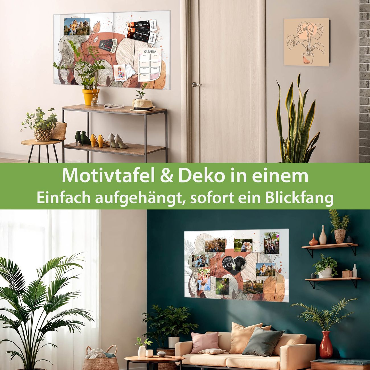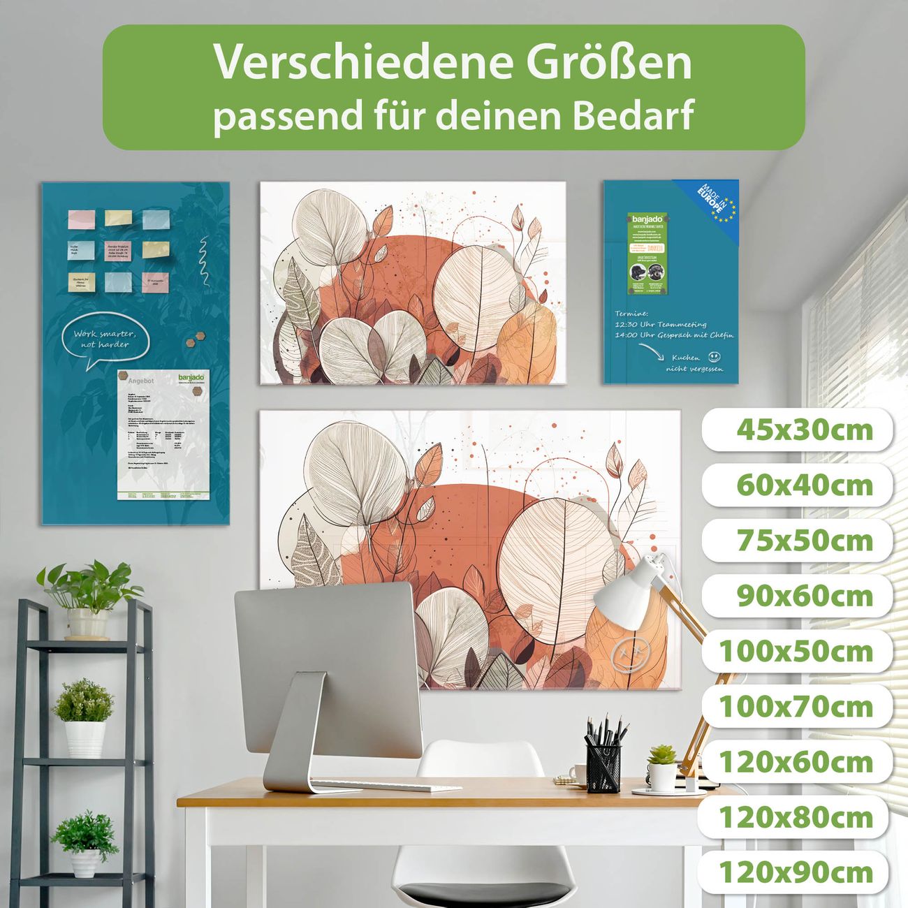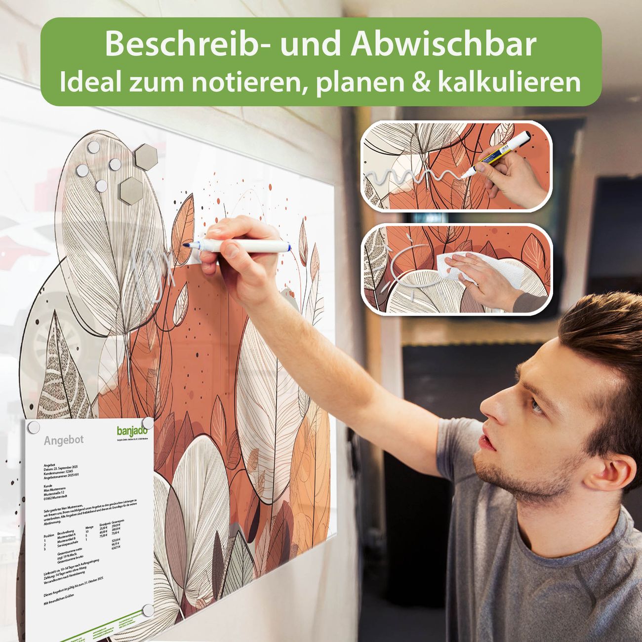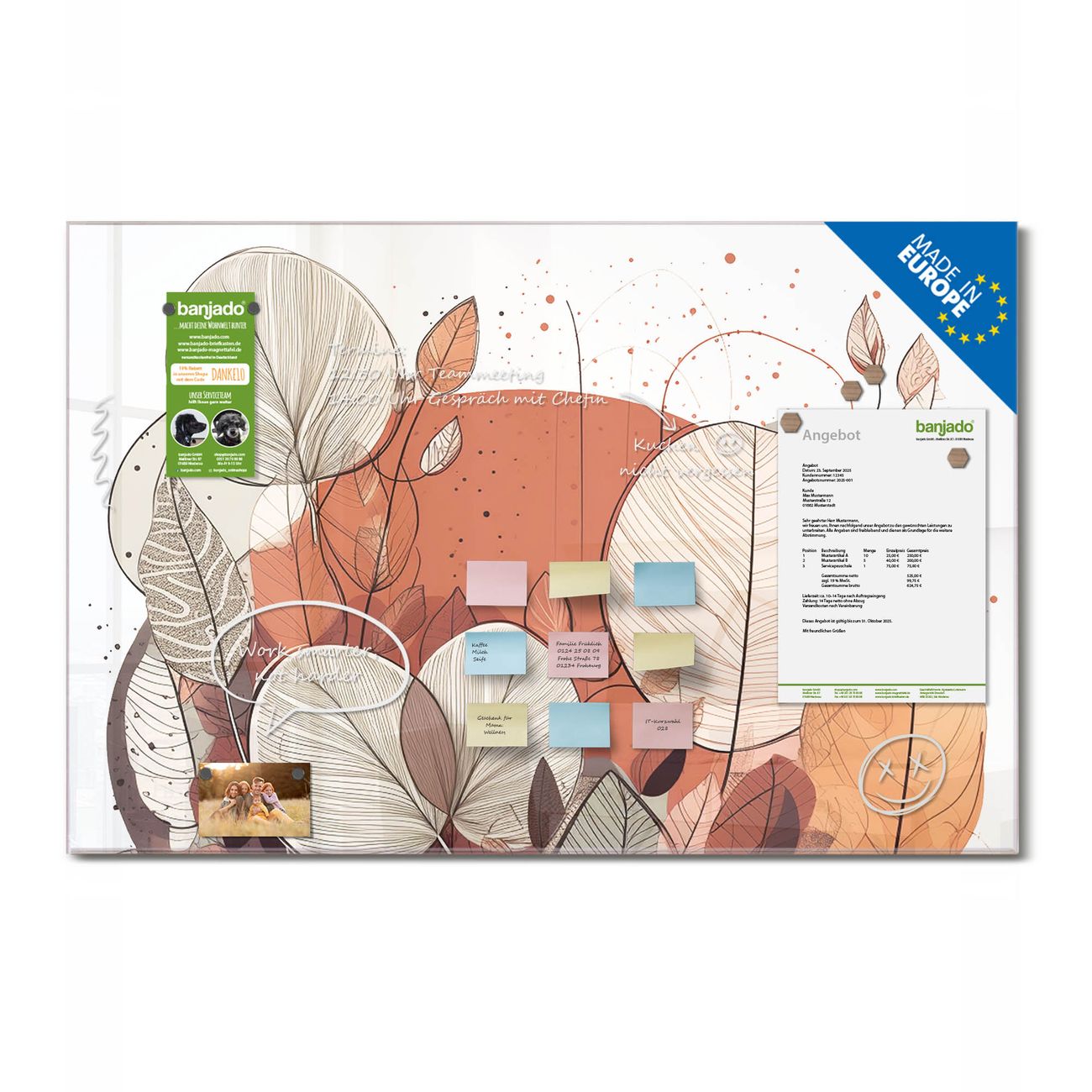 Die banjado Glas Magnettafel mit dem Motiv Motiv Herbstliche Blätterpracht verbindet Funktionalität mit Stil. Sie ersetzt das Zettelchaos durch klare Strukturen und bringt dabei eine warme, natürliche Atmosphäre in Ihr Zuhause. Ob im Büro, in der Küche oder im Eingangsbereich - dieses Design-Board zieht Blicke an und sorgt für Ordnung mit Charakter.