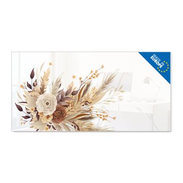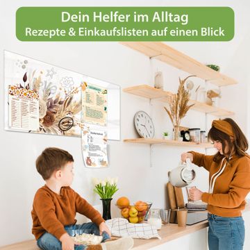 Material: 4mm Sicherheitsglas mit Metallrückwand Eigenschaften: beschreibbar, magnetisch, kratzfest Maße: 100x50x0,6cm, 7,50kg schwer Motiv Nummer 13525 Herbstlicher Blumenstrauß Zubehör: inklusive 4 Neodym-Magnete