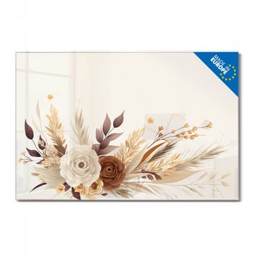 Material: 4mm Sicherheitsglas mit Metallrückwand Eigenschaften: beschreibbar, magnetisch, kratzfest Maße: 120x80x0,6cm, 14,40kg schwer Motiv Nummer 13203 Herbstliches Blumenarrangement Zubehör: inklusive 4 Neodym-Magnete