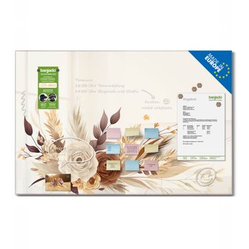 Die banjado Glas Magnettafel mit dem Motiv Motiv Herbstliches Blumenarrangement verbindet Funktionalität mit Stil. Sie ersetzt das Zettelchaos durch klare Strukturen und bringt dabei eine warme, natürliche Atmosphäre in Ihr Zuhause. Ob im Büro, in der Küche oder im Eingangsbereich - dieses Design-Board zieht Blicke an und sorgt für Ordnung mit Charakter.