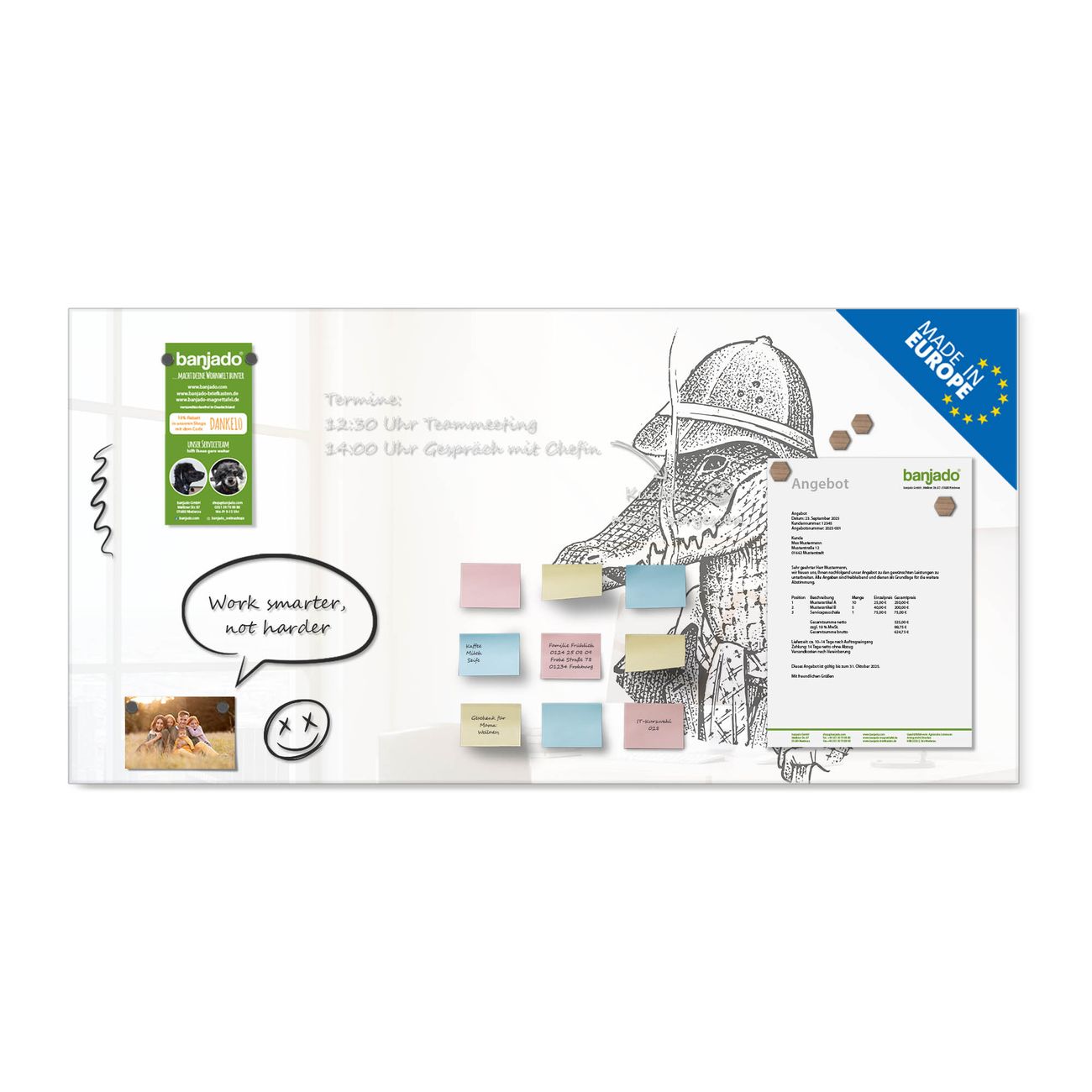 Jede Glas Magnettafel wird in unserer Werkstatt von Hand gefertigt und sorgfältig geprüft. So erhalten Sie ein echtes Qualitätsprodukt, das Funktion und Ästhetik perfekt vereint.?? Warum banjado?