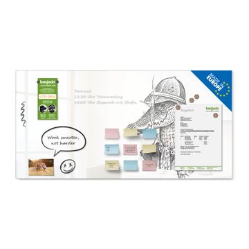 Auf der glatten Glasoberfläche lassen sich Termine, Rezepte oder Notizen ganz einfach mit Kreidestiften festhalten und rückstandslos entfernen. Starke Neodym-Magnete halten Ihre wichtigsten Erinnerungen sicher an Ort und Stelle. So entsteht Ihre ganz persönliche Ideenwand - jeden Tag neu.