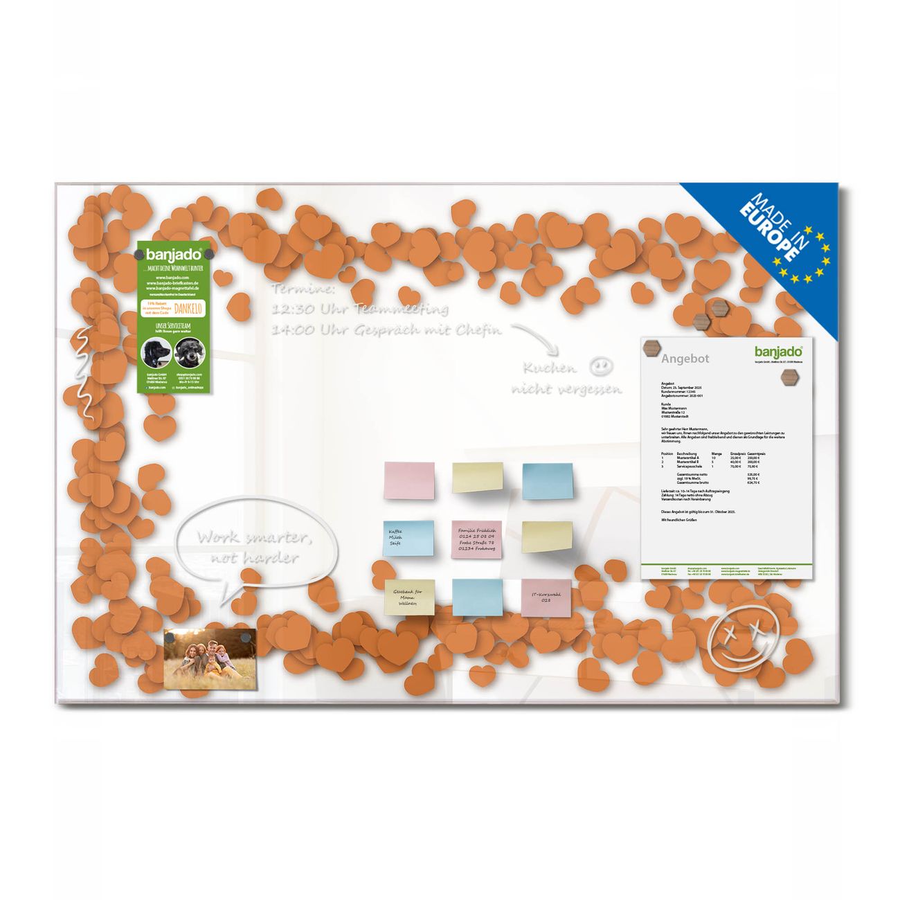 Glas Magnettafel im Querformat Motiv Herzrahmen in Orange