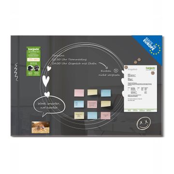 Auf der glatten Glasoberfläche lassen sich Termine, Rezepte oder Notizen ganz einfach mit Kreidestiften festhalten und rückstandslos entfernen. Starke Neodym-Magnete halten Ihre wichtigsten Erinnerungen sicher an Ort und Stelle. So entsteht Ihre ganz persönliche Ideenwand - jeden Tag neu.