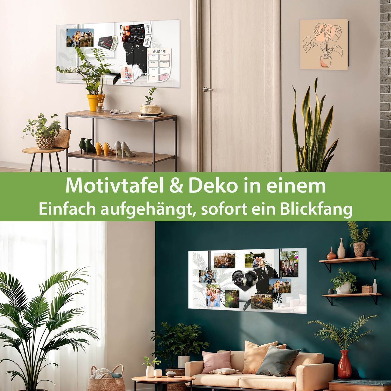 Dank der flachen Bauweise wirkt die Magnetwand fast schwebend an der Wand. Sie können sie mit Montagekleber elegant befestigen oder mit einem passenden Set klassisch verschrauben - beides sorgt für sicheren Halt und eine dezente Optik.