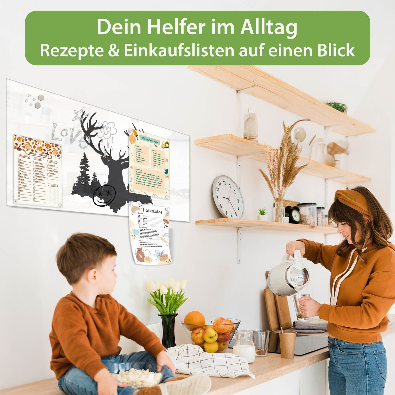 Ein Stück Design, das Ihren Alltag organisiert. Schreiben, heften, inspirieren - alles an einem Ort. Qualität, die man spürt. Montage leicht gemacht. Handwerk mit Herz - veredelt in Sachsen. Einzigartiges Design mit Motiv Motiv Hirsch im Wald Beschreibbare Glasoberfläche, leicht zu reinigen Starke Magnetkraft durch Stahlrückwand Inklusive 4 Neodym-Magneten Flexible Montageoptionen Handveredelt in Sachsen - Qualität, die bleibt