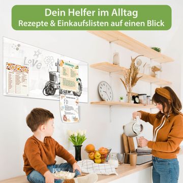 Auf der glatten Glasoberfläche lassen sich Termine, Rezepte oder Notizen ganz einfach mit Kreidestiften festhalten und rückstandslos entfernen. Starke Neodym-Magnete halten Ihre wichtigsten Erinnerungen sicher an Ort und Stelle. So entsteht Ihre ganz persönliche Ideenwand - jeden Tag neu.