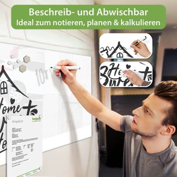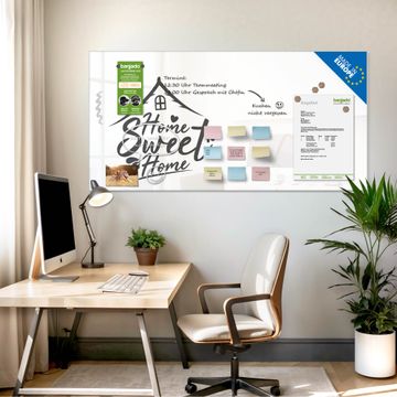 Auf der glatten Glasoberfläche lassen sich Termine, Rezepte oder Notizen ganz einfach mit Kreidestiften festhalten und rückstandslos entfernen. Starke Neodym-Magnete halten Ihre wichtigsten Erinnerungen sicher an Ort und Stelle. So entsteht Ihre ganz persönliche Ideenwand - jeden Tag neu.