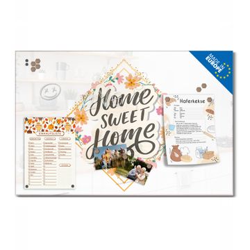 Material: 4mm Sicherheitsglas mit Metallrückwand Eigenschaften: beschreibbar, magnetisch, kratzfest Maße: 75x50x0,6cm, 5,63kg schwer Motiv Nummer 13397 Home Sweet Home Schild Zubehör: inklusive 4 Neodym-Magnete