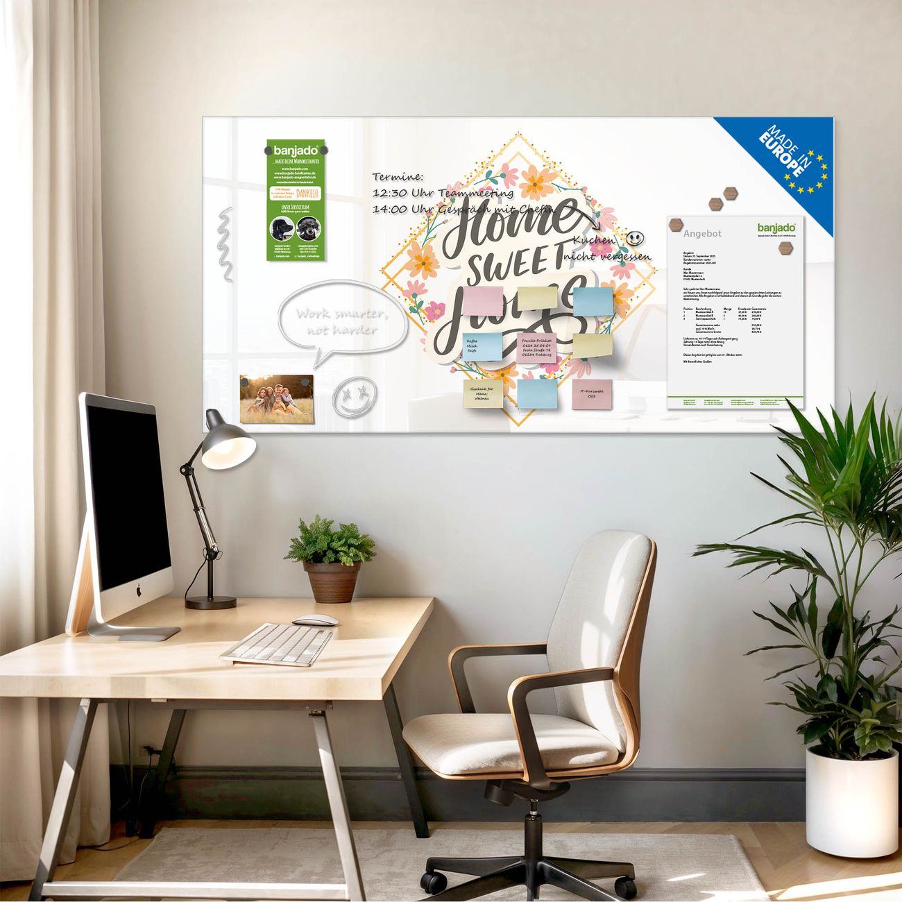 Jede Glas Magnettafel wird in unserer Werkstatt von Hand gefertigt und sorgfältig geprüft. So erhalten Sie ein echtes Qualitätsprodukt, das Funktion und Ästhetik perfekt vereint.?? Warum banjado?