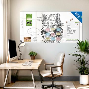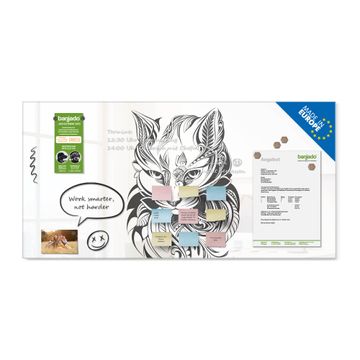 Material: 4mm Sicherheitsglas mit Metallrückwand Eigenschaften: beschreibbar, magnetisch, kratzfest Maße: 100x50x0,6cm, 7,50kg schwer Motiv Nummer 13043 Katze 2 Zubehör: inklusive 4 Neodym-Magnete