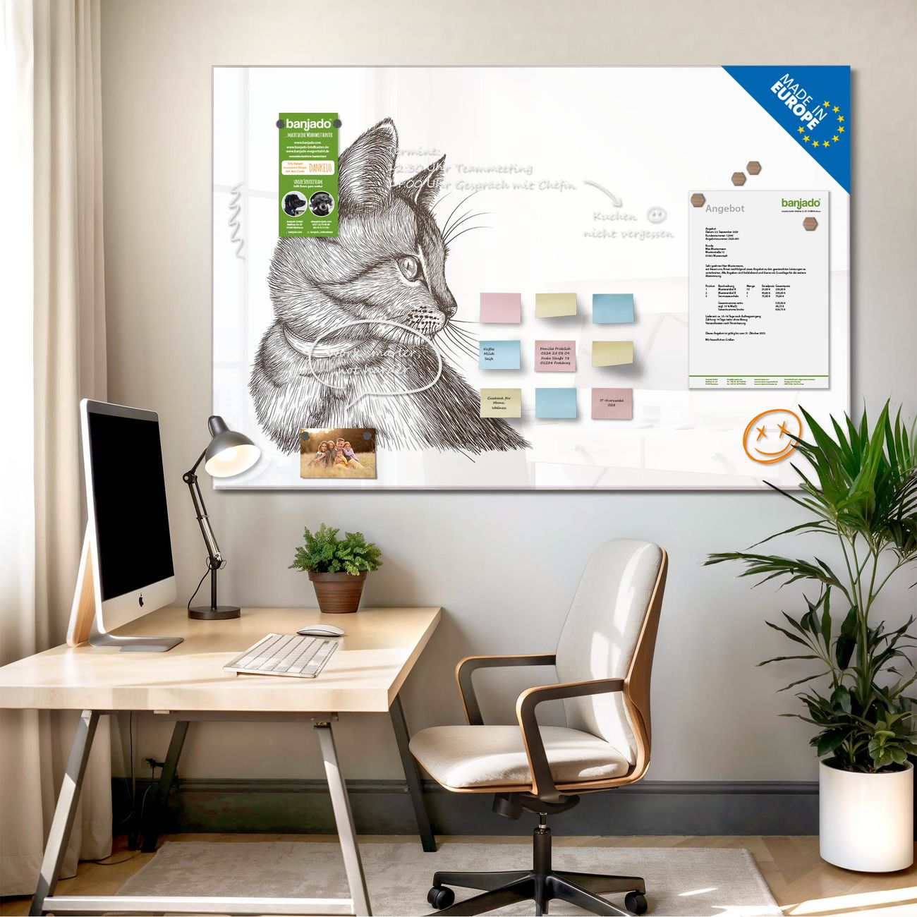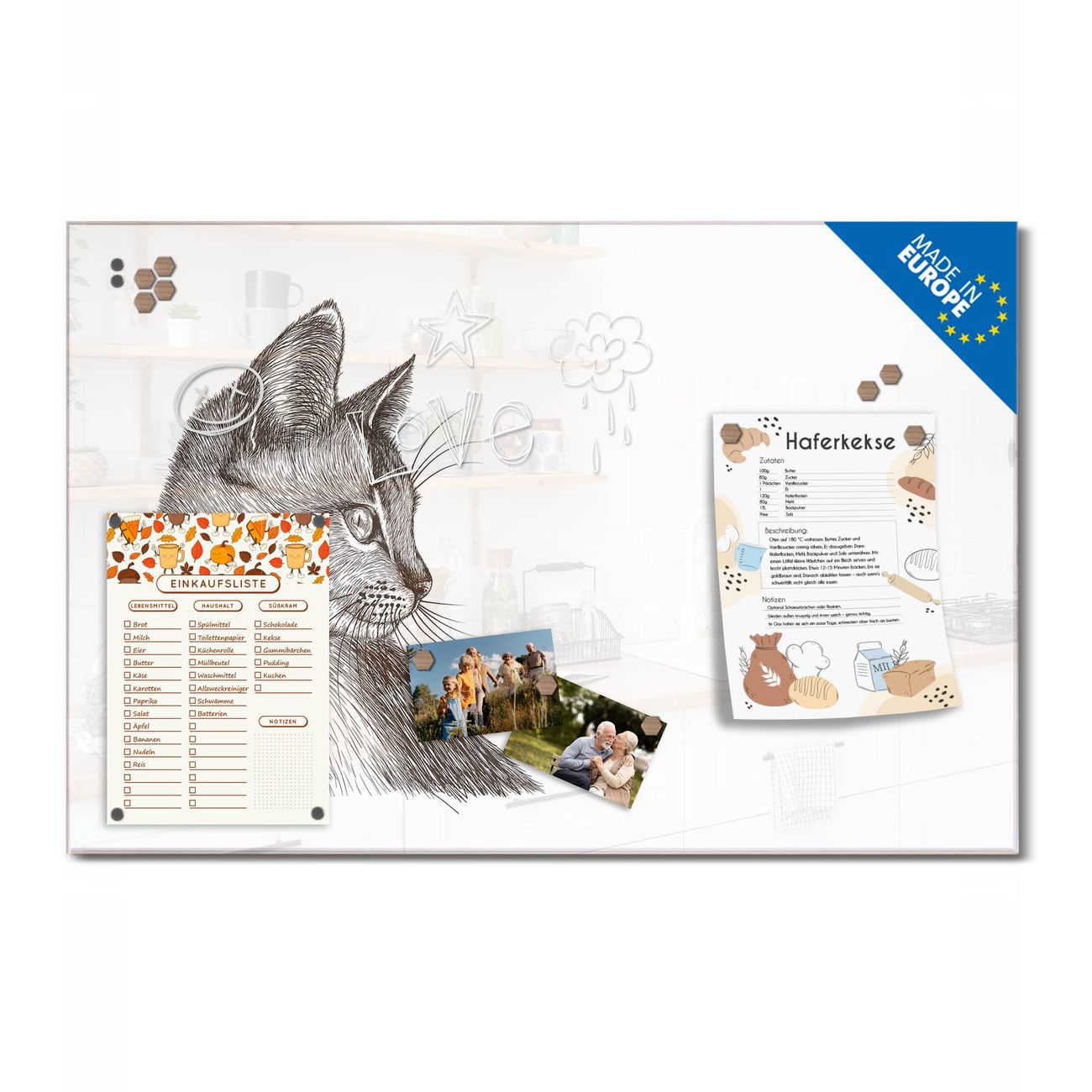 Glas Magnettafel im Querformat Motiv Katzenillustration