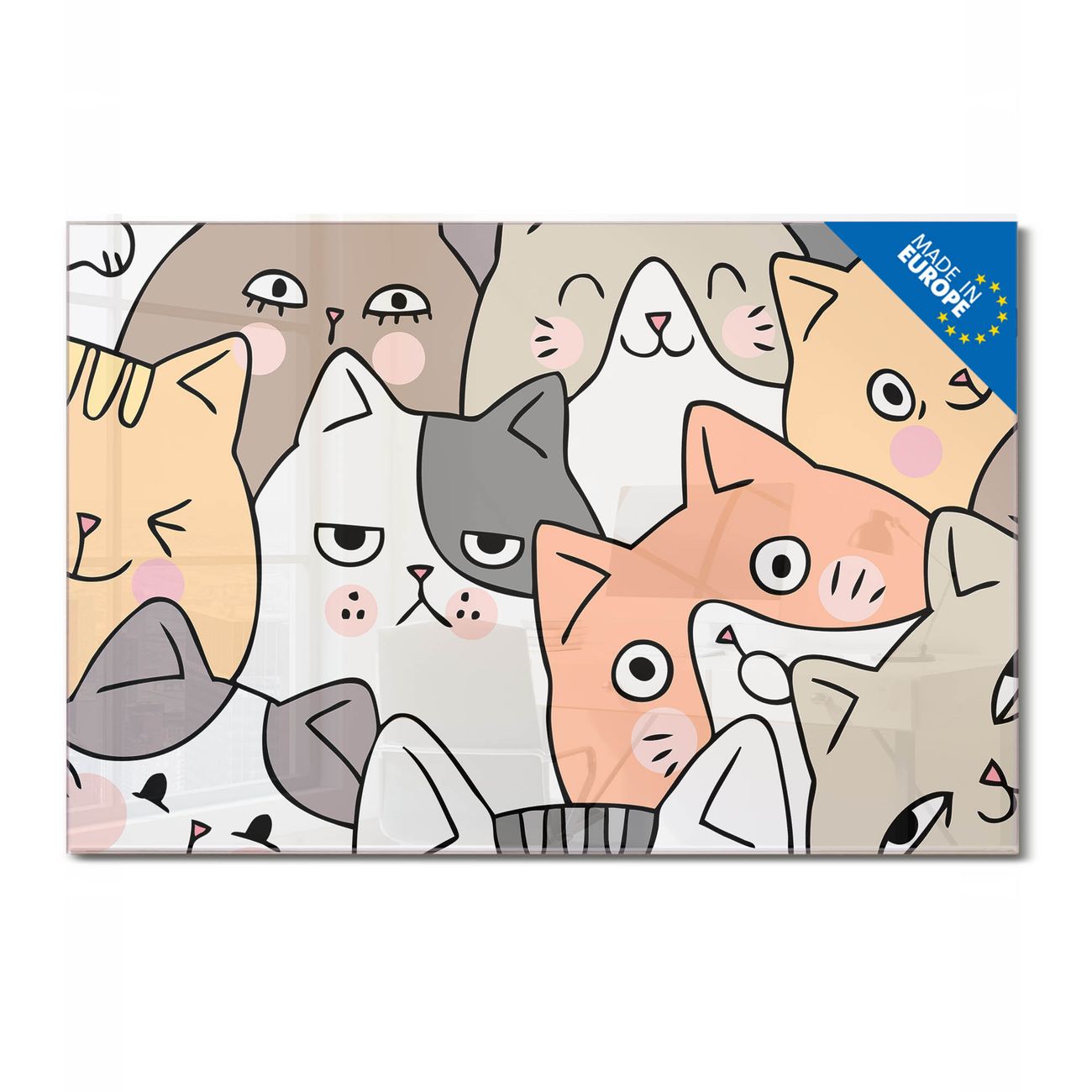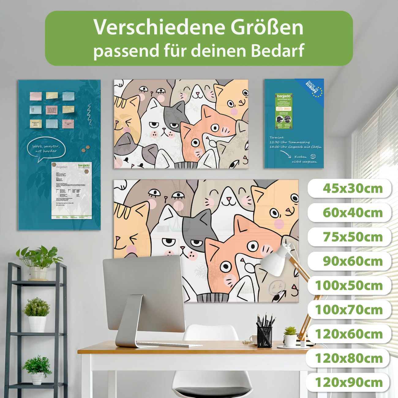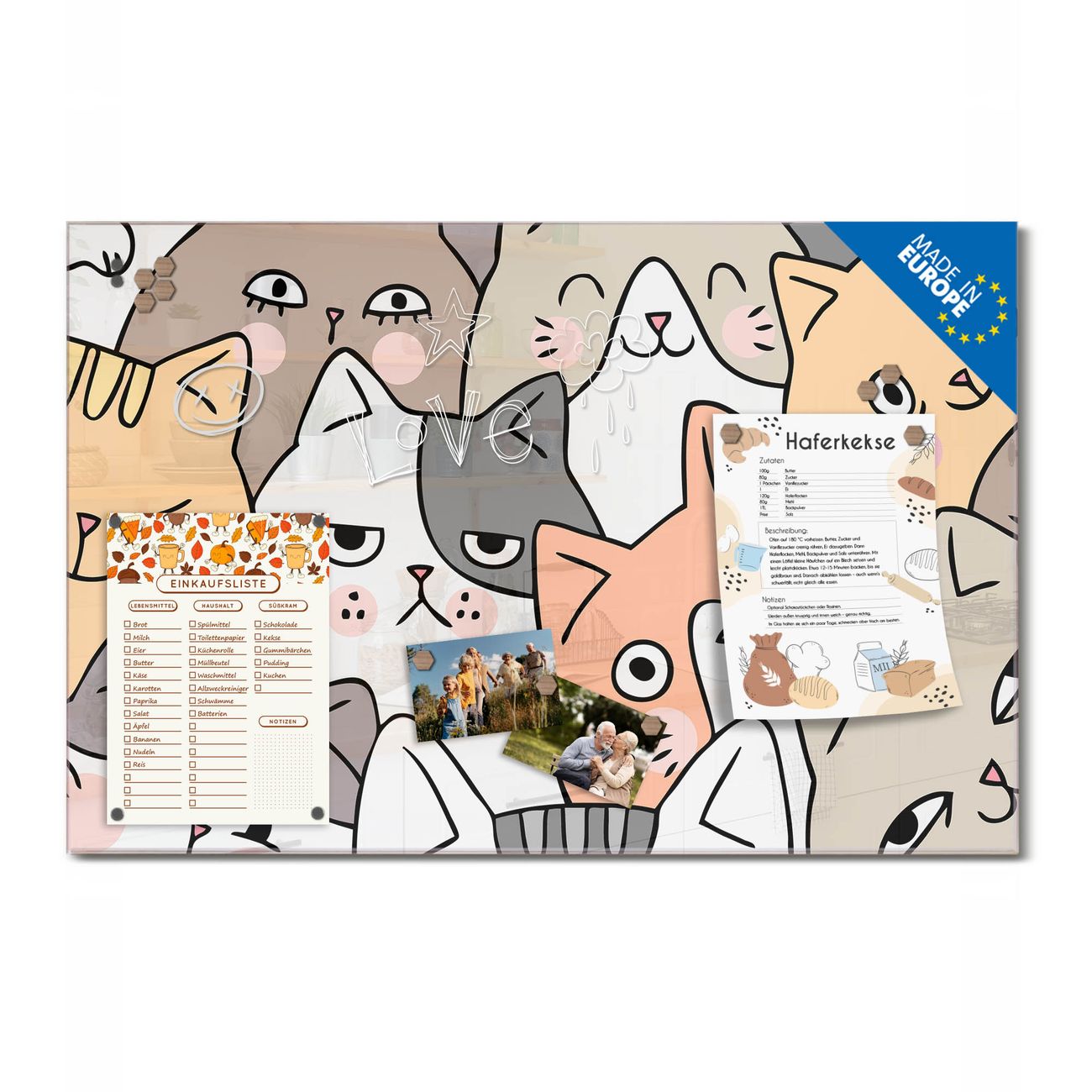 Material: 4mm Sicherheitsglas mit Metallrückwand Eigenschaften: beschreibbar, magnetisch, kratzfest Maße: 75x50x0,6cm, 5,63kg schwer Motiv Nummer 13431 Katzenkuscheln Zubehör: inklusive 4 Neodym-Magnete