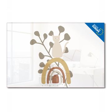 Material: 4mm Sicherheitsglas mit Metallrückwand Eigenschaften: beschreibbar, magnetisch, kratzfest Maße: 90x60x0,6cm, 8,10kg schwer Motiv Nummer 13162 Katzenregenbogen Zubehör: inklusive 4 Neodym-Magnete