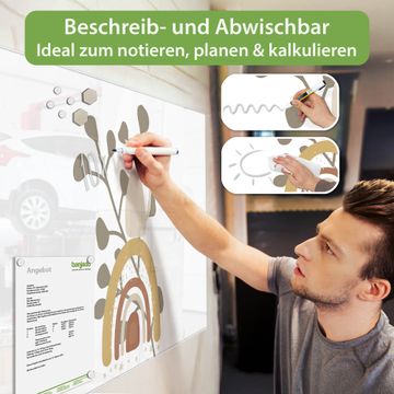 Auf der glatten Glasoberfläche lassen sich Termine, Rezepte oder Notizen ganz einfach mit Kreidestiften festhalten und rückstandslos entfernen. Starke Neodym-Magnete halten Ihre wichtigsten Erinnerungen sicher an Ort und Stelle. So entsteht Ihre ganz persönliche Ideenwand - jeden Tag neu.