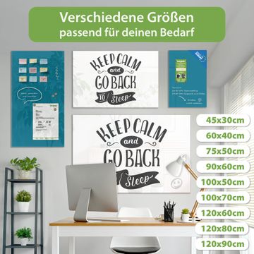 Die banjado Glas Magnettafel mit dem Motiv Motiv Keep Calm Schriftzug verbindet Funktionalität mit Stil. Sie ersetzt das Zettelchaos durch klare Strukturen und bringt dabei eine warme, natürliche Atmosphäre in Ihr Zuhause. Ob im Büro, in der Küche oder im Eingangsbereich - dieses Design-Board zieht Blicke an und sorgt für Ordnung mit Charakter.
