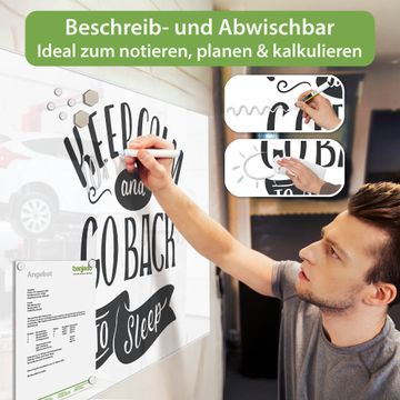 Gefertigt aus gehärtetem Sicherheitsglas mit einer magnetischen Rückwand aus Stahl überzeugt diese Magnettafel durch Stabilität und Langlebigkeit. Die Oberfläche bleibt dauerhaft brillant und pflegeleicht, selbst bei täglicher Nutzung.