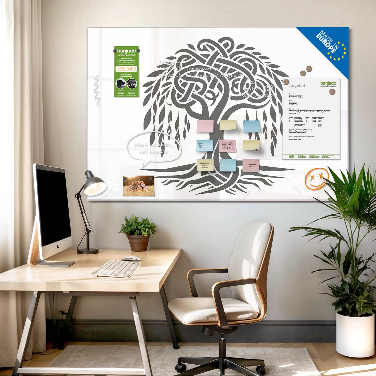 Die banjado Glas Magnettafel mit dem Motiv Motiv Keltischer Baum des Lebens verbindet Funktionalität mit Stil. Sie ersetzt das Zettelchaos durch klare Strukturen und bringt dabei eine warme, natürliche Atmosphäre in Ihr Zuhause. Ob im Büro, in der Küche oder im Eingangsbereich - dieses Design-Board zieht Blicke an und sorgt für Ordnung mit Charakter.