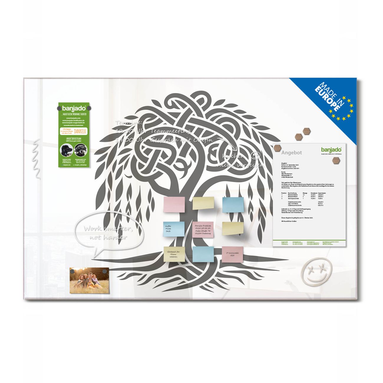 Material: 4mm Sicherheitsglas mit Metallrückwand Eigenschaften: beschreibbar, magnetisch, kratzfest Maße: 120x80x0,6cm, 14,40kg schwer Motiv Nummer 13337 Keltischer Baum des Lebens Zubehör: inklusive 4 Neodym-Magnete