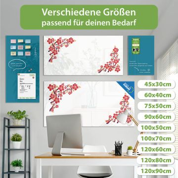 Die banjado Glas Magnettafel mit dem Motiv Motiv Kirschblütenmuster verbindet Funktionalität mit Stil. Sie ersetzt das Zettelchaos durch klare Strukturen und bringt dabei eine warme, natürliche Atmosphäre in Ihr Zuhause. Ob im Büro, in der Küche oder im Eingangsbereich - dieses Design-Board zieht Blicke an und sorgt für Ordnung mit Charakter.