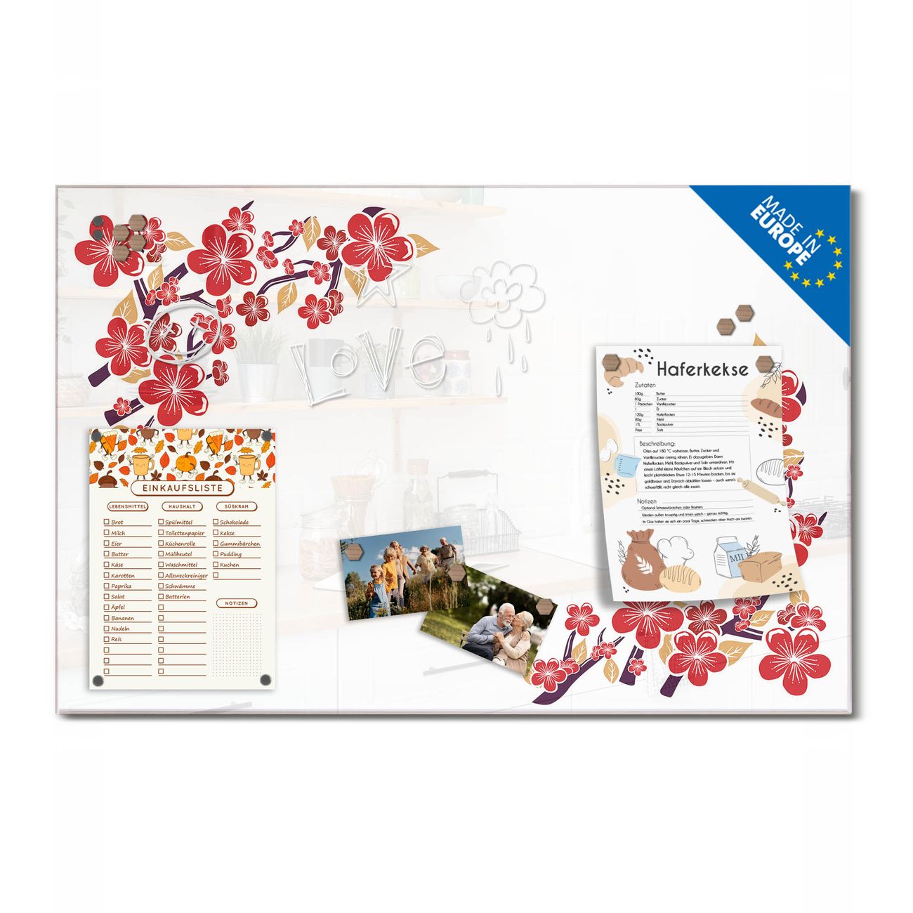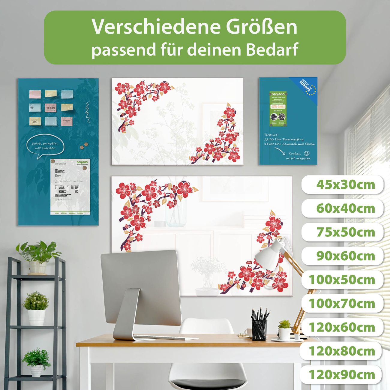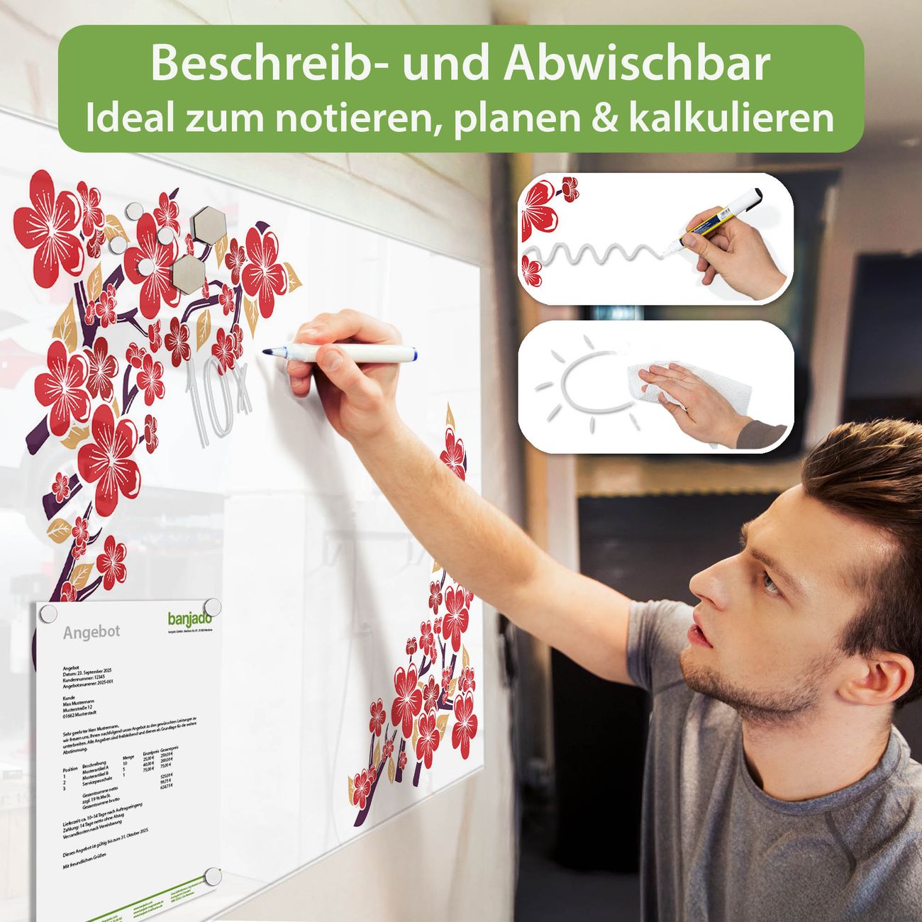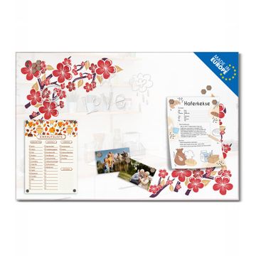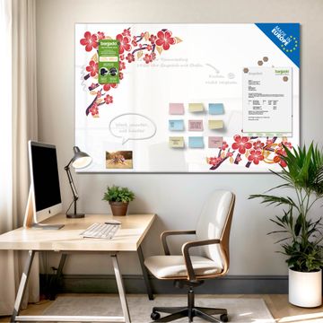 Glas Magnettafel im Querformat Motiv Kirschblütenmuster