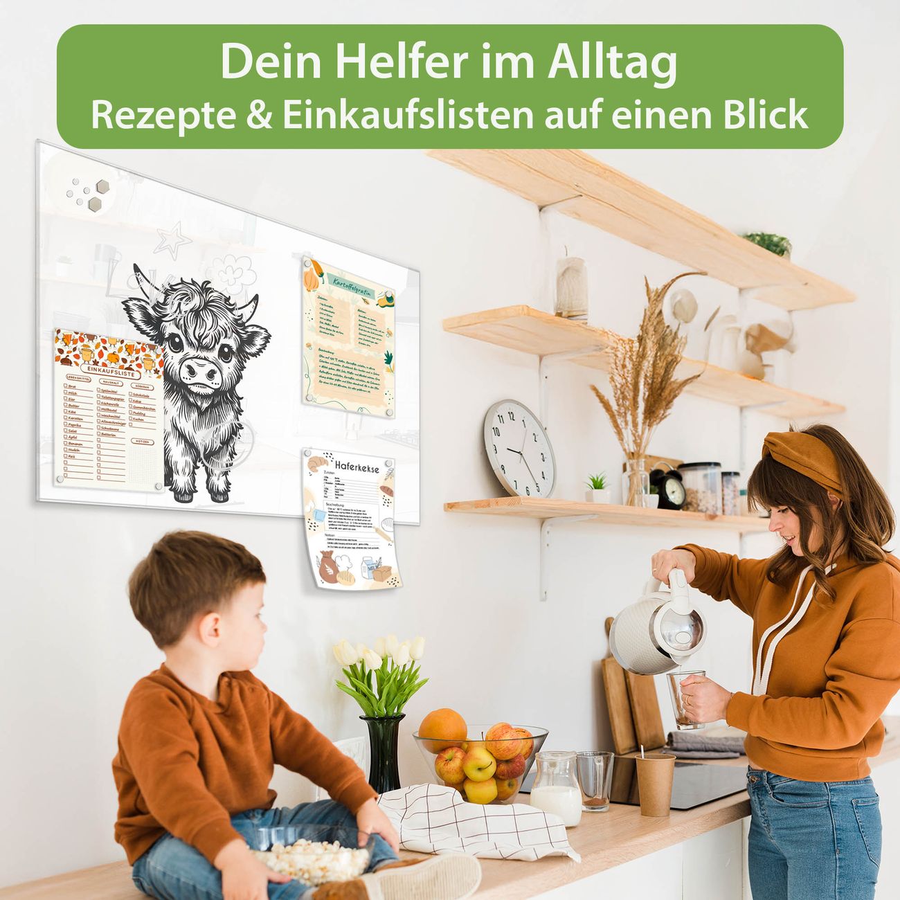 Ein Stück Design, das Ihren Alltag organisiert. Schreiben, heften, inspirieren - alles an einem Ort. Qualität, die man spürt. Montage leicht gemacht. Handwerk mit Herz - veredelt in Sachsen. Einzigartiges Design mit Motiv Motiv Kleines Hochlandrind Beschreibbare Glasoberfläche, leicht zu reinigen Starke Magnetkraft durch Stahlrückwand Inklusive 4 Neodym-Magneten Flexible Montageoptionen Handveredelt in Sachsen - Qualität, die bleibt