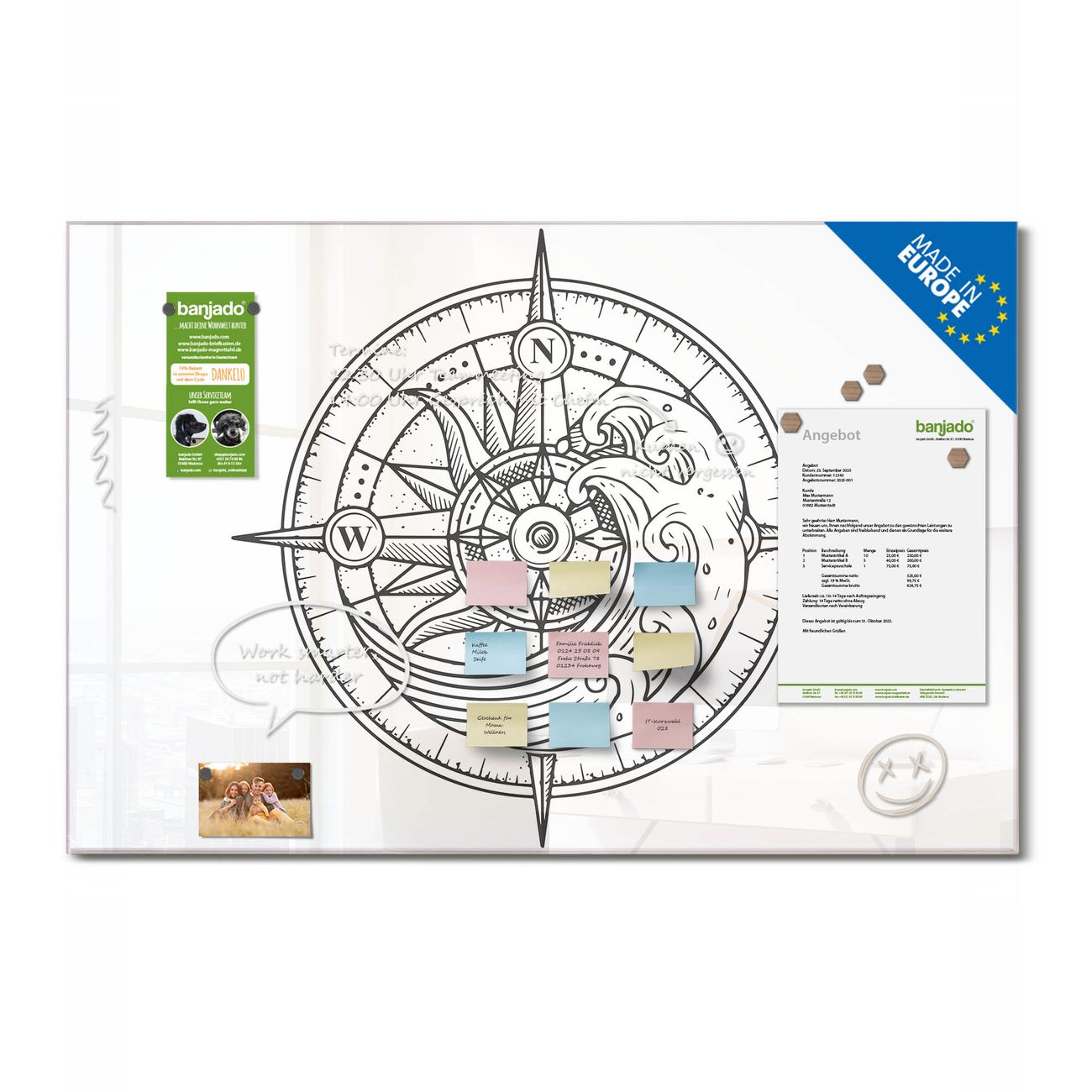 Glas Magnettafel im Querformat Motiv Kompass 2