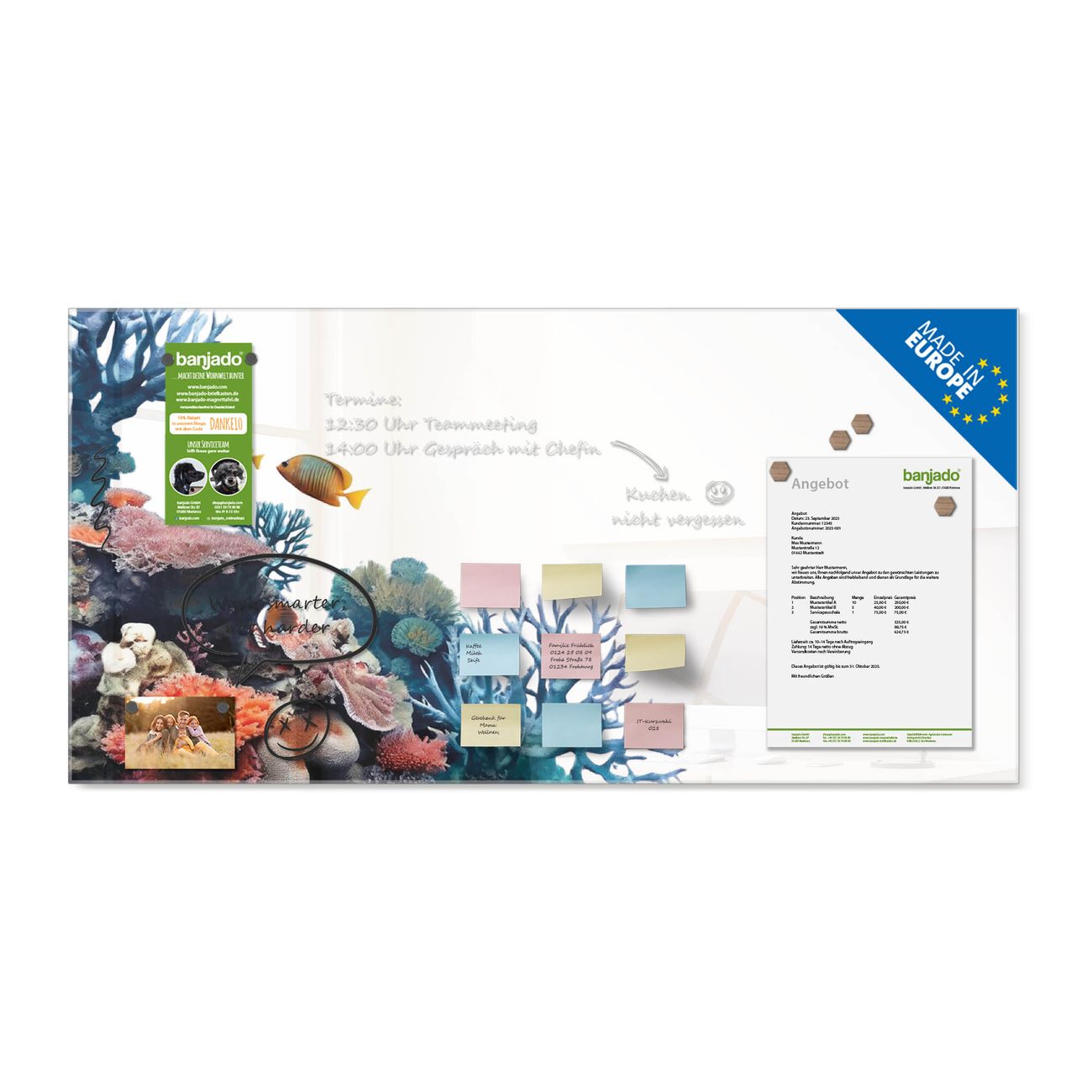 Glas Magnettafel im Querformat Motiv Korallenriff und Fische