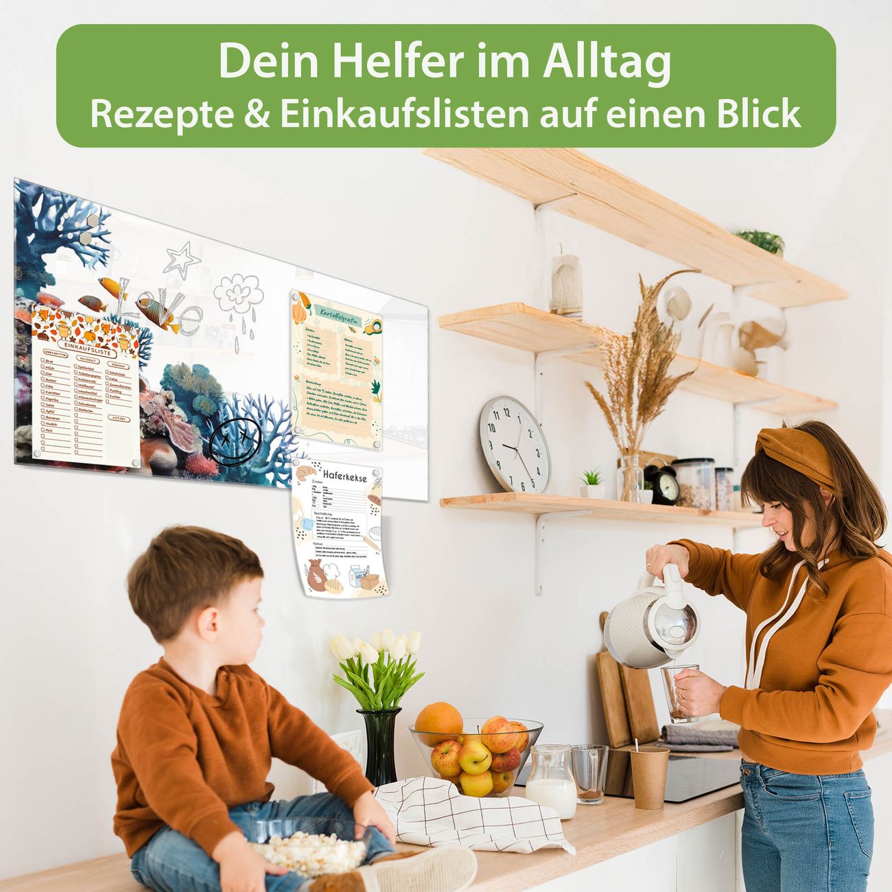 Ein Stück Design, das Ihren Alltag organisiert. Schreiben, heften, inspirieren - alles an einem Ort. Qualität, die man spürt. Montage leicht gemacht. Handwerk mit Herz - veredelt in Sachsen. Einzigartiges Design mit Motiv Motiv Korallenriff und Fische Beschreibbare Glasoberfläche, leicht zu reinigen Starke Magnetkraft durch Stahlrückwand Inklusive 4 Neodym-Magneten Flexible Montageoptionen Handveredelt in Sachsen - Qualität, die bleibt