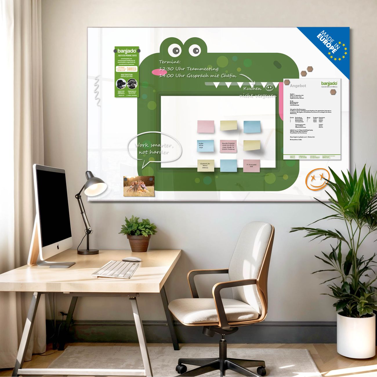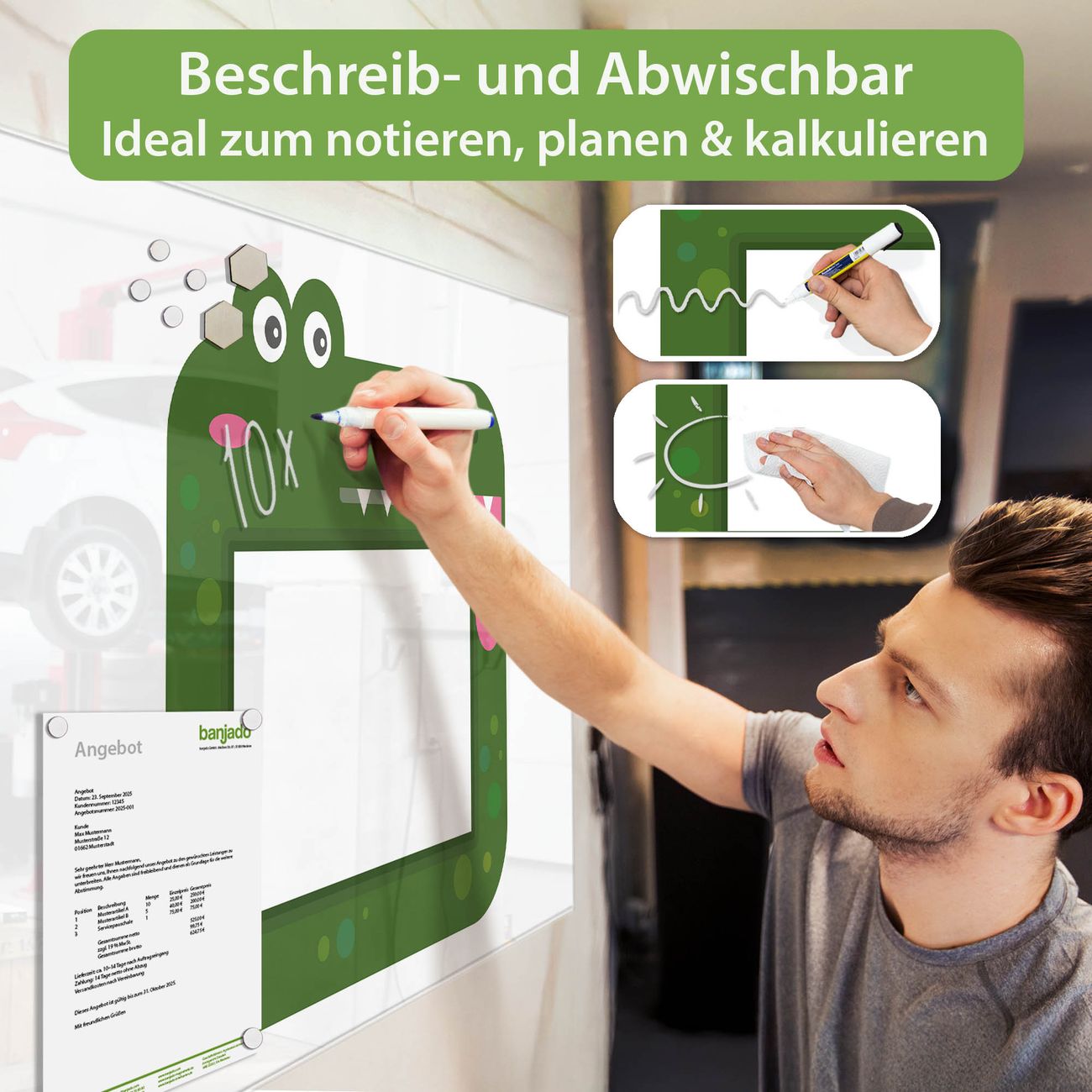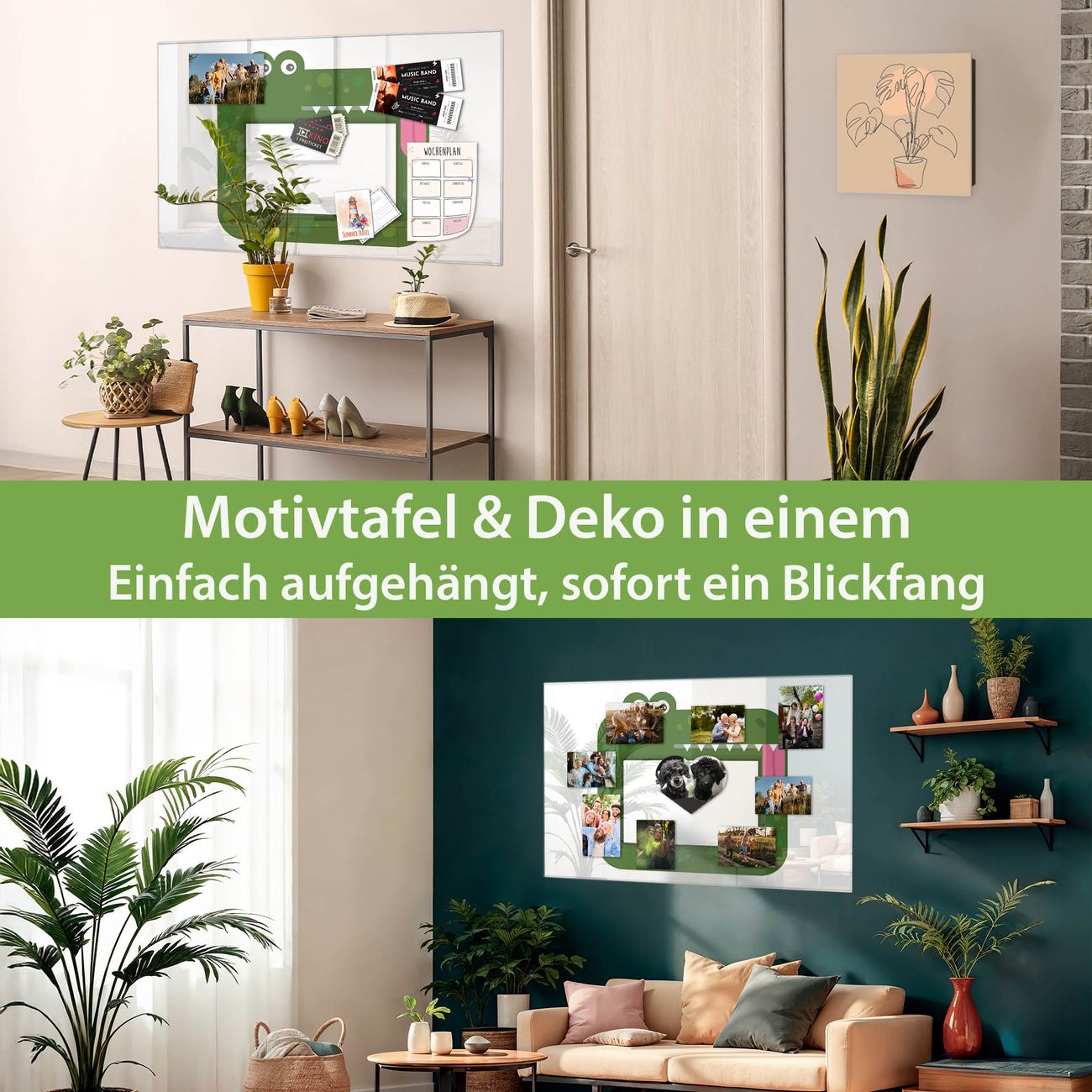 Die banjado Glas Magnettafel mit dem Motiv Motiv Krokodil-Bilderrahmen verbindet Funktionalität mit Stil. Sie ersetzt das Zettelchaos durch klare Strukturen und bringt dabei eine warme, natürliche Atmosphäre in Ihr Zuhause. Ob im Büro, in der Küche oder im Eingangsbereich - dieses Design-Board zieht Blicke an und sorgt für Ordnung mit Charakter.