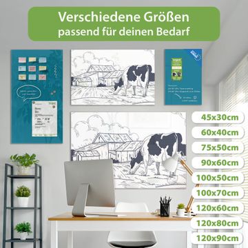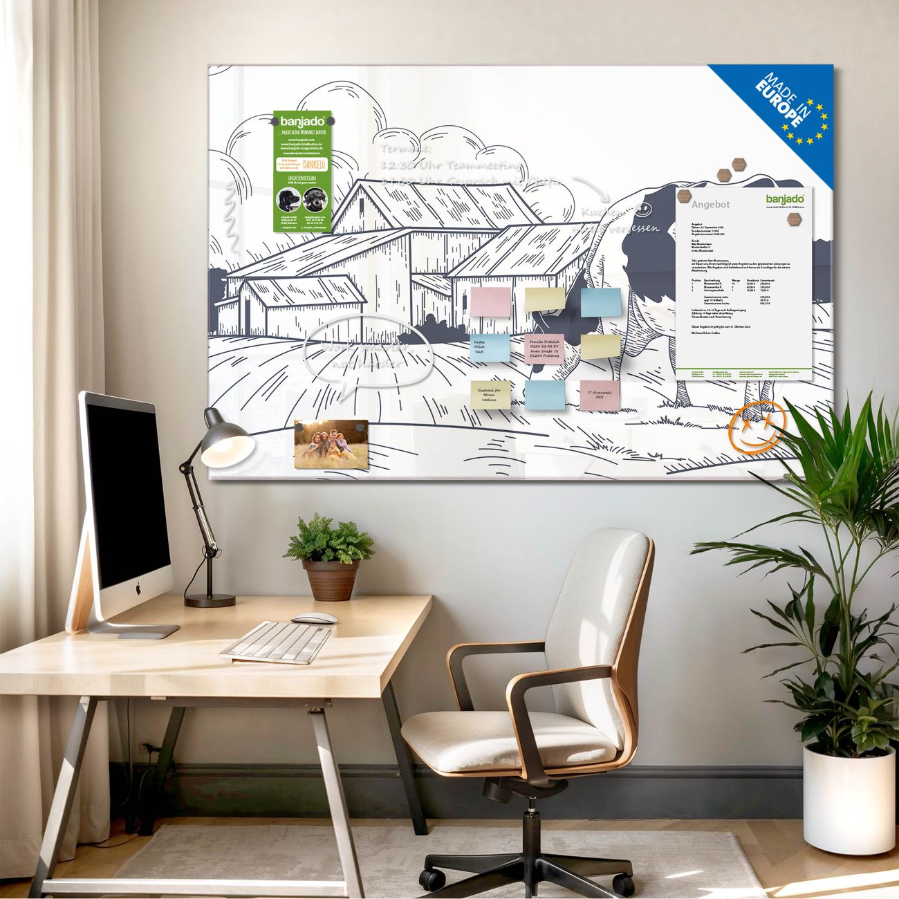Die banjado Glas Magnettafel mit dem Motiv Motiv Ländliche Idylle mit Kuh verbindet Funktionalität mit Stil. Sie ersetzt das Zettelchaos durch klare Strukturen und bringt dabei eine warme, natürliche Atmosphäre in Ihr Zuhause. Ob im Büro, in der Küche oder im Eingangsbereich - dieses Design-Board zieht Blicke an und sorgt für Ordnung mit Charakter.
